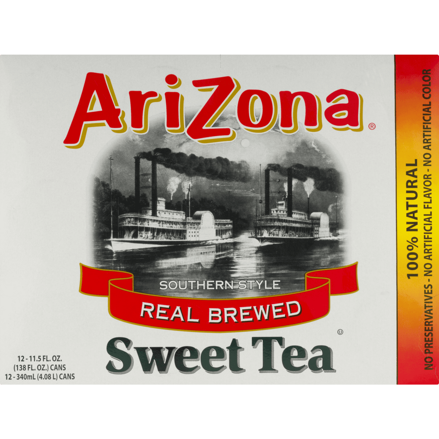 Arizona Southern Style Real Brewed Sweet Tea is a good addition to your household beverage selection. The delicious, sweet flavor of this tea is ideal for a hot summer day or anytime you need a refreshing pick-me-up thirst quencher. This 12-pack of Arizona real brewed sweet tea can be stored at room temperature or in the fridge, but is best served cold. Grab a can of this scrumptious sweet tea anytime you have a craving for something smooth and refreshing. Arizona sweet tea is a delicious alternative to sodas, fruit juice or flavored water. Best of all, the convenient, portable 11.5 fl oz cans make it easy to pack this refreshing drink in a school lunch, for a picnic in the park, for refreshments after a game or at a family get-together, or any other time you need sweet tea to go.