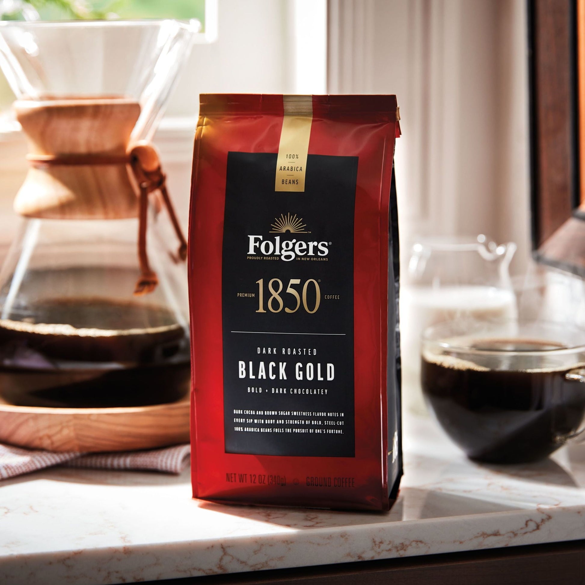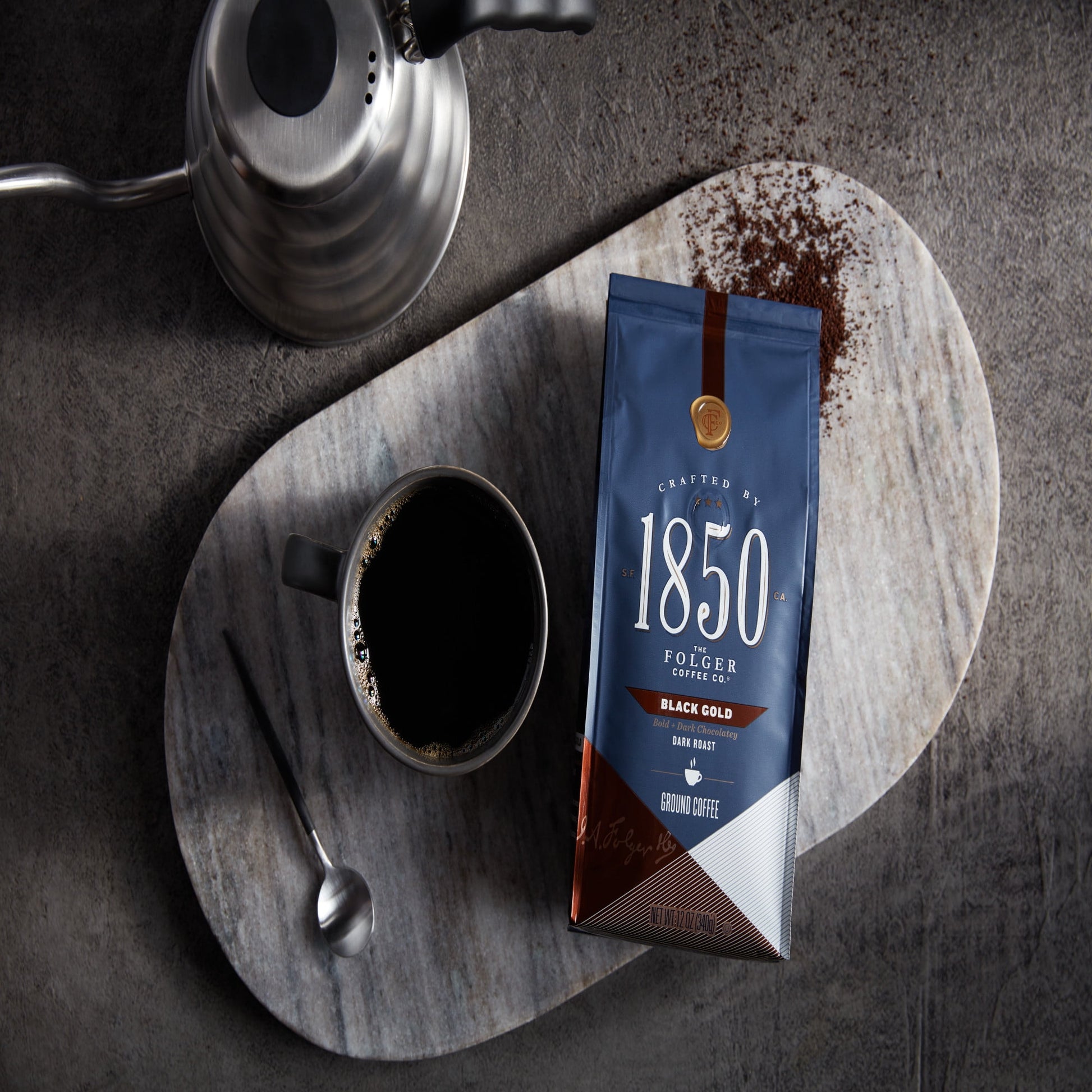 Contains one (1) 12 ounce bag of 1850 Black Gold ground coffee