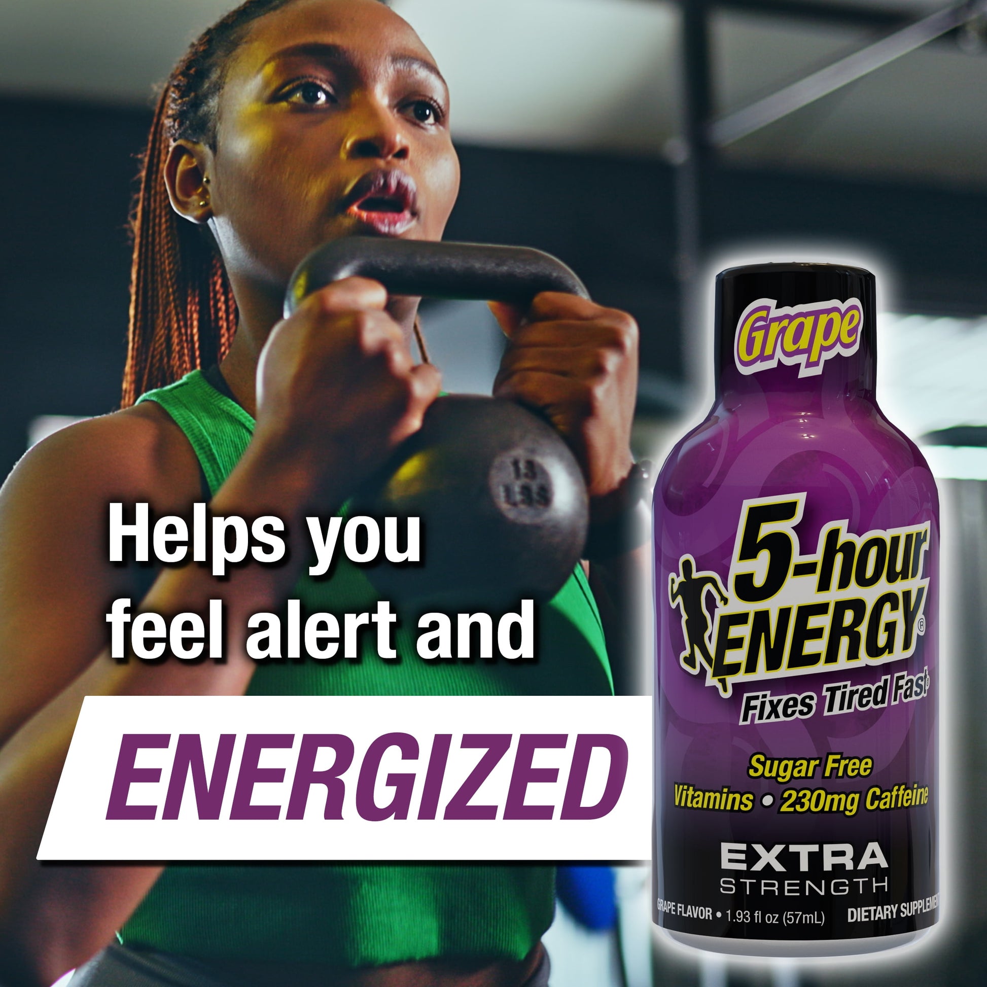 Some days you just need a little something extra to get going. So why not get the extra boost you need to tackle your to-do list with a Grape Extra Strength 5-hour ENERGY® shot? Our Grape Extra Strength energy shots not only taste great, they also have a beefed-up energy blend that will give you hours of the energized feeling you need to be productive. Best of all, while it contains caffeine comparable to 12 ounces of the leading premium coffee, it counts four calories and zero sugar. Want to kick your day into high gear? Grab a Grape Extra Strength 5-hour ENERGY® shot. Drink it in seconds, feel it in minutes and it lasts for hours.