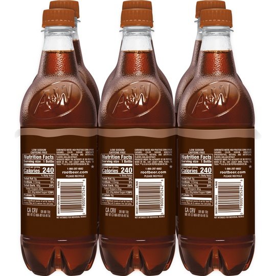 Indulge in the creamy, caffeine-free taste of A&W Root Beer. A classic American favorite since 1919. Perfect for family nights or floats with a scoop of vanilla ice cream. Trust the timeless taste of A&W Root Beer. Available in a convenient 6-pack of .5 liter bottles.