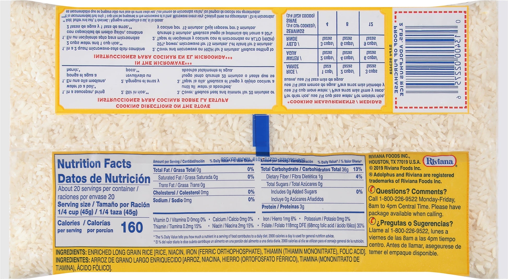 Adolphus Enriched Long Grain White Rice contains superior flavor and cooks to a fluffy, tender texture every time. Our long grain rice is known for its outstanding and consistent quality and is all-natural, gluten-free, non-GMO, fat-free, sodium-free, and kosher. This 2-pound bag of cooking rice contains 20 servings and can be used as a base for a delicious chicken fried rice recipe or as a side paired with your favorite meat and vegetables. Eat Rice, Eat Right!
