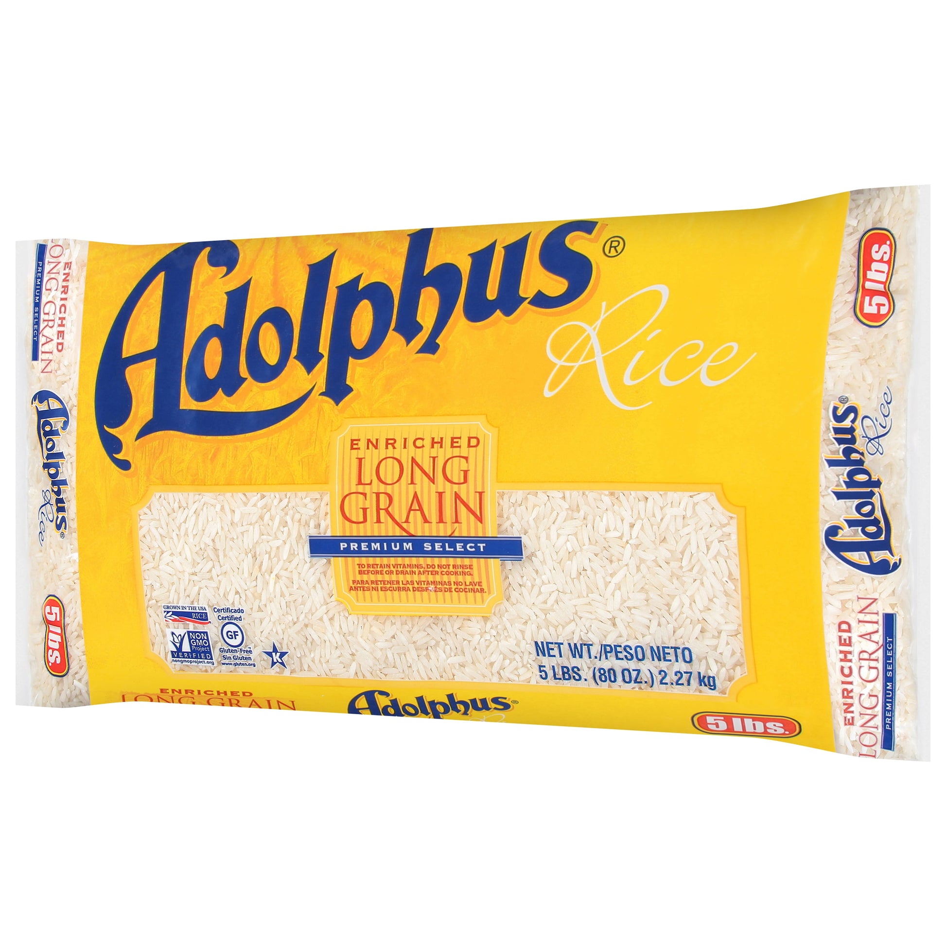 Adolphus Enriched Long Grain White Rice contains superior flavor and cooks to a fluffy, tender texture every time. Our long grain rice is known for its outstanding and consistent quality and is all-natural, gluten-free, non-GMO, fat-free, sodium-free, and kosher. This 5-pound bag of cooking rice contains 50 servings and can be used as a base for a delicious chicken fried rice recipe or as a side paired with your favorite meat and vegetables. Eat Rice, Eat Right!
