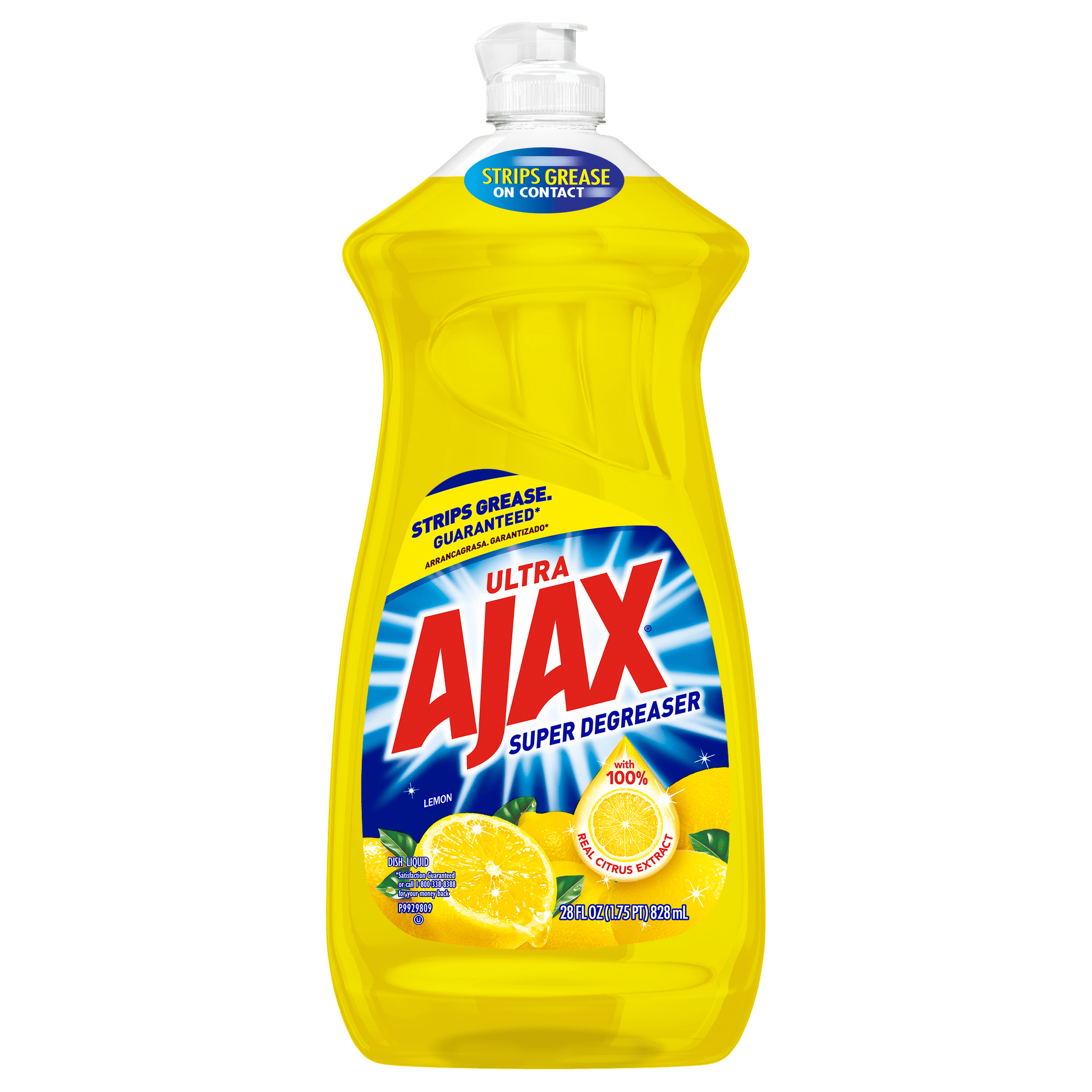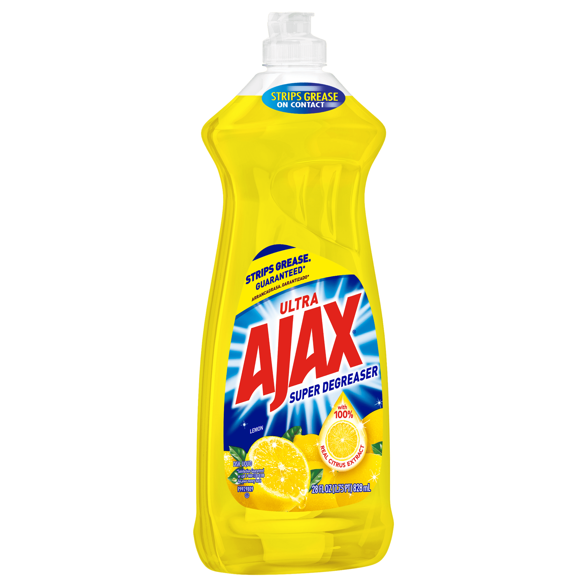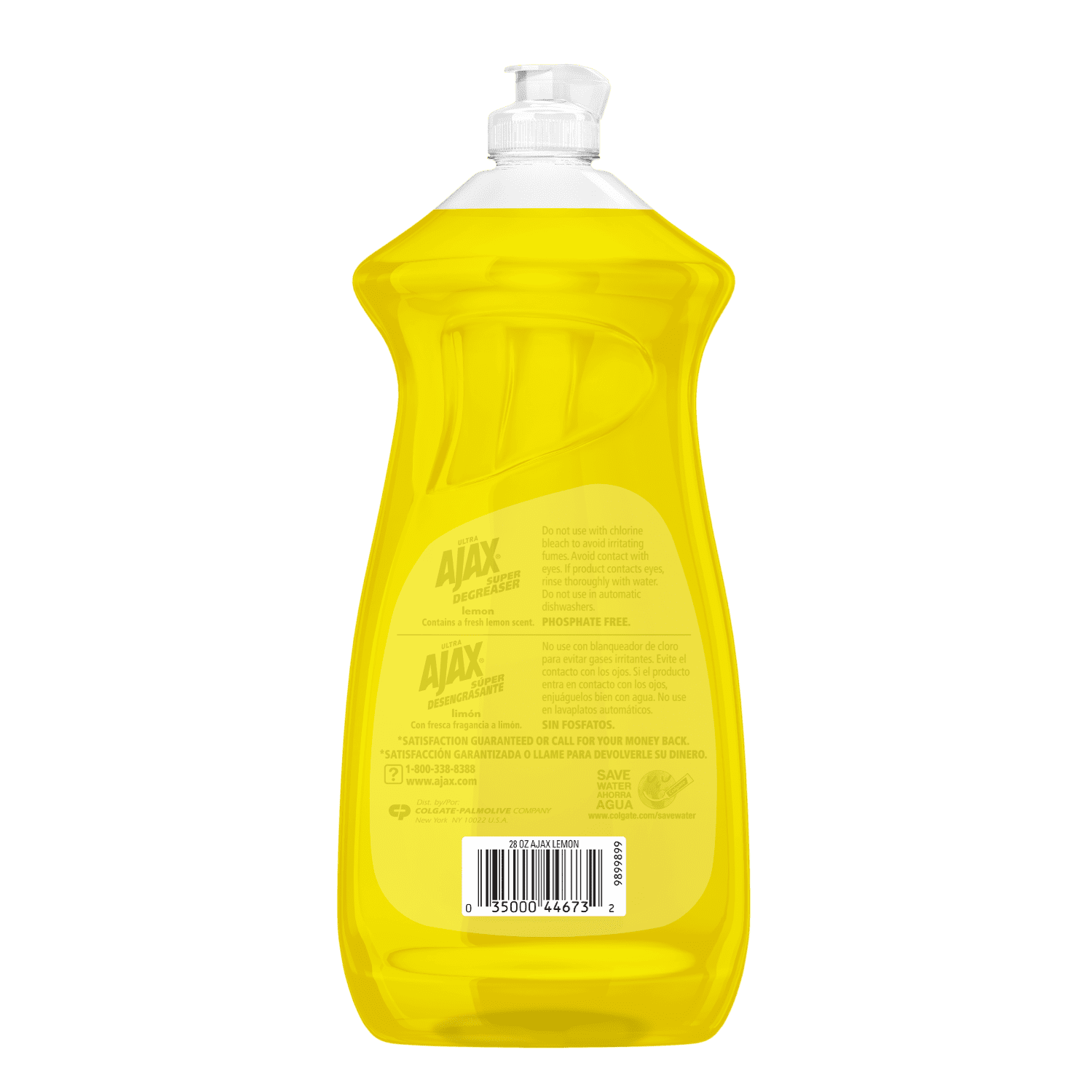 Delight in the fresh, clean aroma of Lemon while getting your dishes spotlessly clean with Ajax Ultra Super Degreaser Lemon Dishwashing Liquid 28 fl oz. It is formulated with natural citrus extracts and powerful ingredients. It removes tough, baked-on food residue, dirt, soil, and grease to leave dishes sparkling clean and fresh. This washing liquid is kosher and phosphate free.
