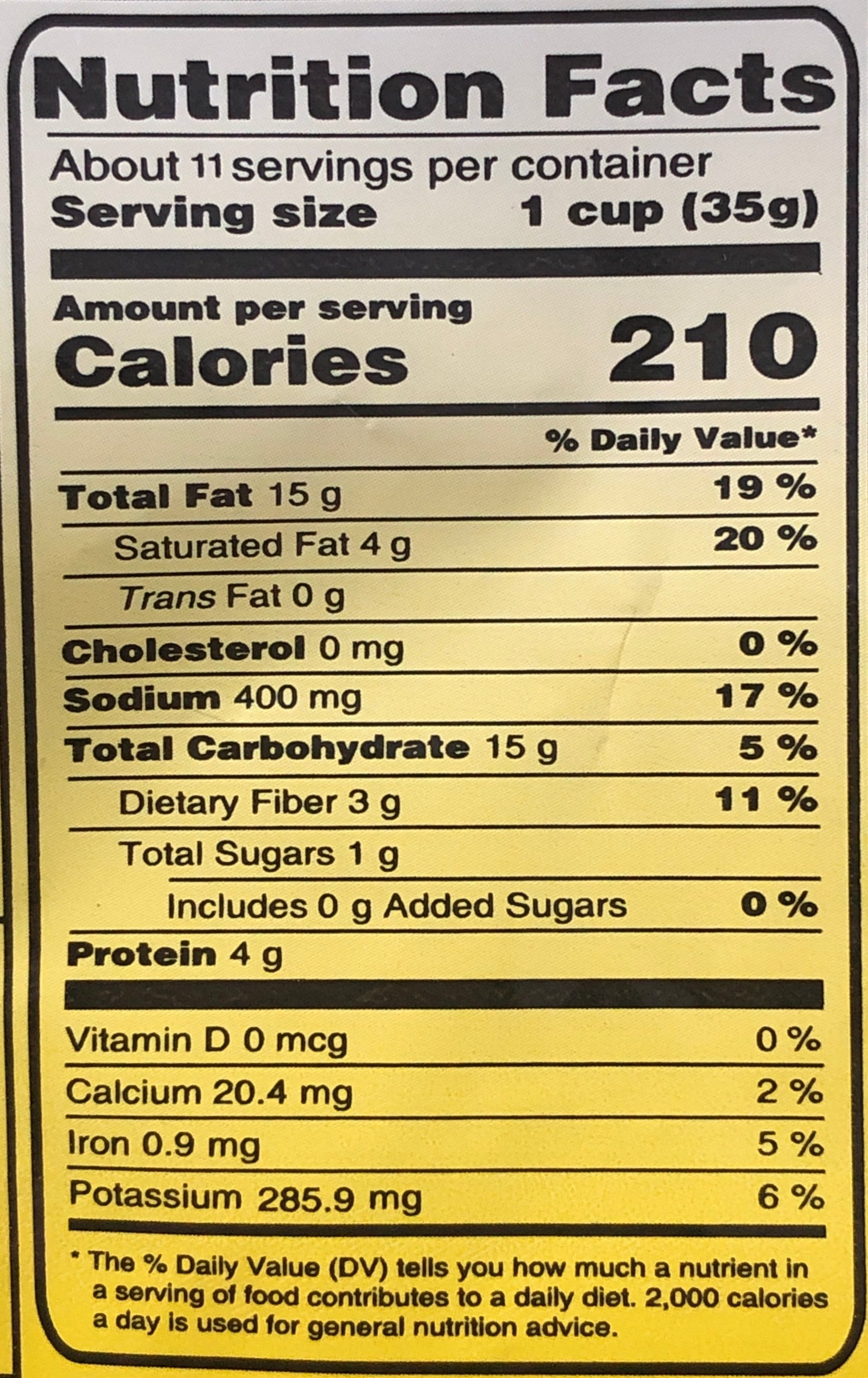 Product FeaturesIngredients: Potatoes (44%), Vegetable Oil (Peanut, Corn & Cotton Seed), Chickpeas Pulse Flour (4%), Tepary Beans Flour (2%), Starch (Sago), Salt, Coriander Powder, Cumin Powder, Mango Powder, Ginger Powder, Red Chili Powder, Mint Leaves Powder, Citric Acid Powder (E 330)
