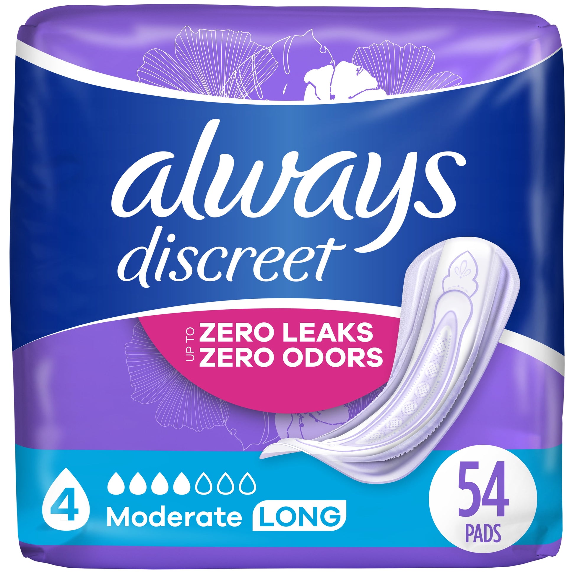 Always Discreet Incontinence Pads for Women, Moderate Long 54 Count