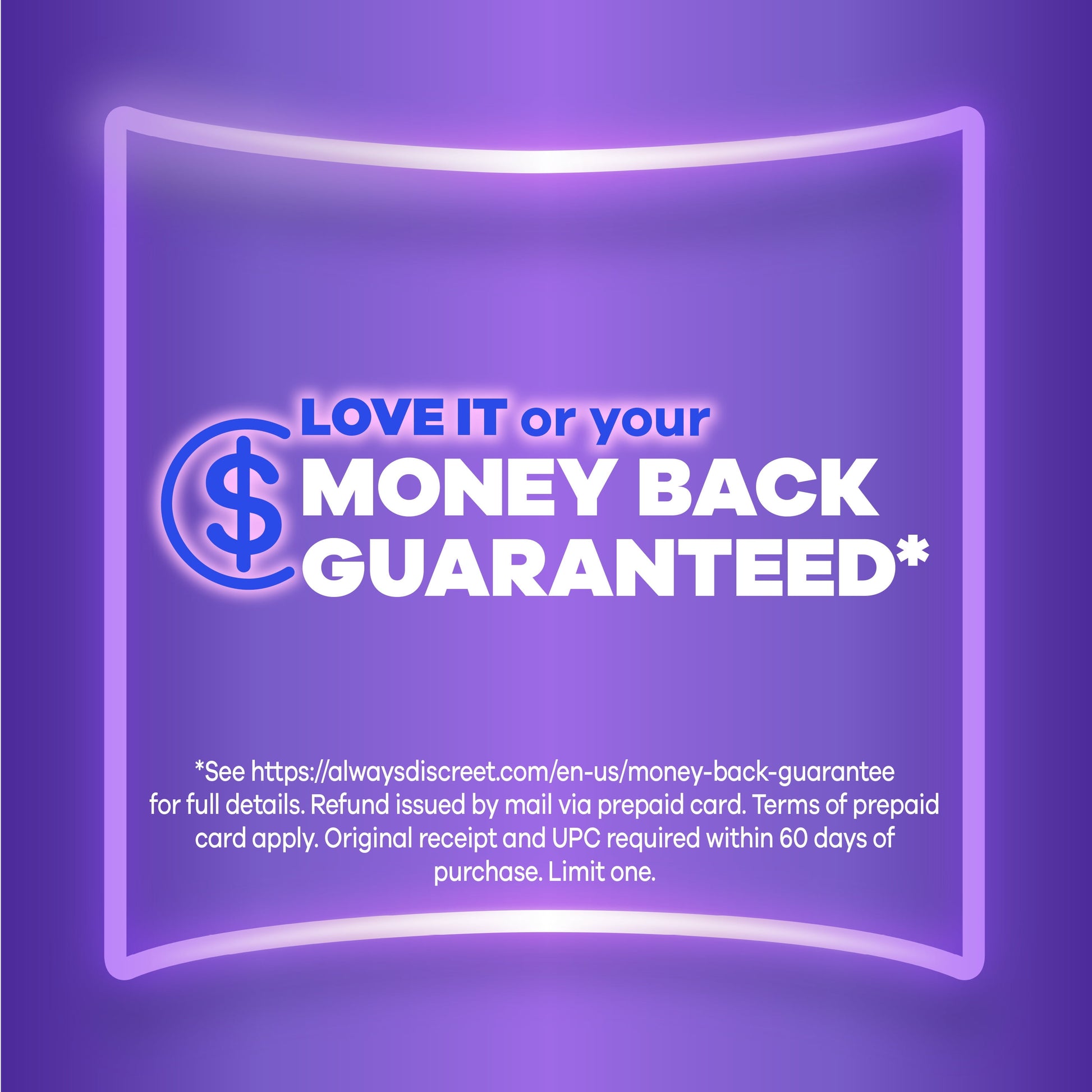Looking for incredibly strong bladder leak protection that's barely noticeable under clothes? Experience incredible bladder leak and postpartum protection in a surprisingly thin and discreet incontinence pad. Always Discreet Incontinence Pads for Women, Moderate Long, 54 Count provide the comfort you need with up to the 100% leak-free protection you deserve. Thanks to a unique absorbent core that keeps your skin dry by absorbing bladder leaks in seconds, you'll be able to stay comfortable and feel fresh for hours. Walk with poise and confidence knowing two Rapid Dry layers form a boosted protection zone in the center of the pad that holds up to 5x the average leak, giving you extra bladder control protection where you need it most. The Leak Guards help keep wetness away from the sides and prevent run-offs at the edges where unexpected leaks tend to occur, while the lightly scented Odor Lock technology neutralizes odors instantly and continuously. Don't let bladder leaks get in the way of your day. Simply find your right size with the Always Discreet My Fit chart and get the bladder control pads for women with protection you can depend on. Incontinence liners, bladder leak pads for women, maxi-pads, and pantiliners are FSA and HSA eligible. Always Discreet Incontinence Pads are available in bulk for added convenience.