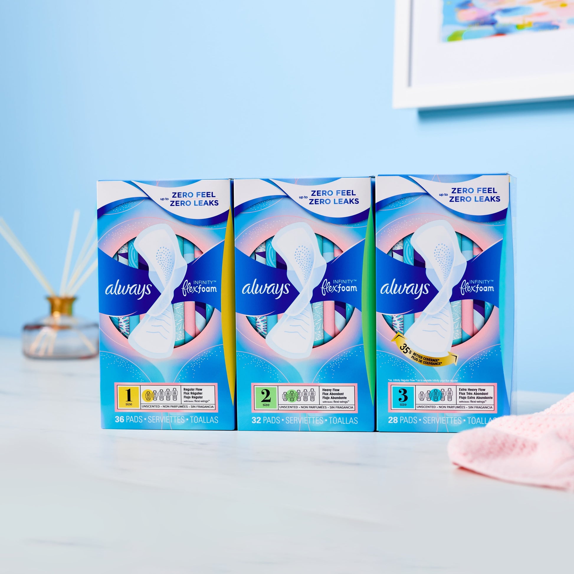 Zero Leaks and Zero Feel is possible with Always Infinity Flex Foam Heavy Flow Absorbency period pads