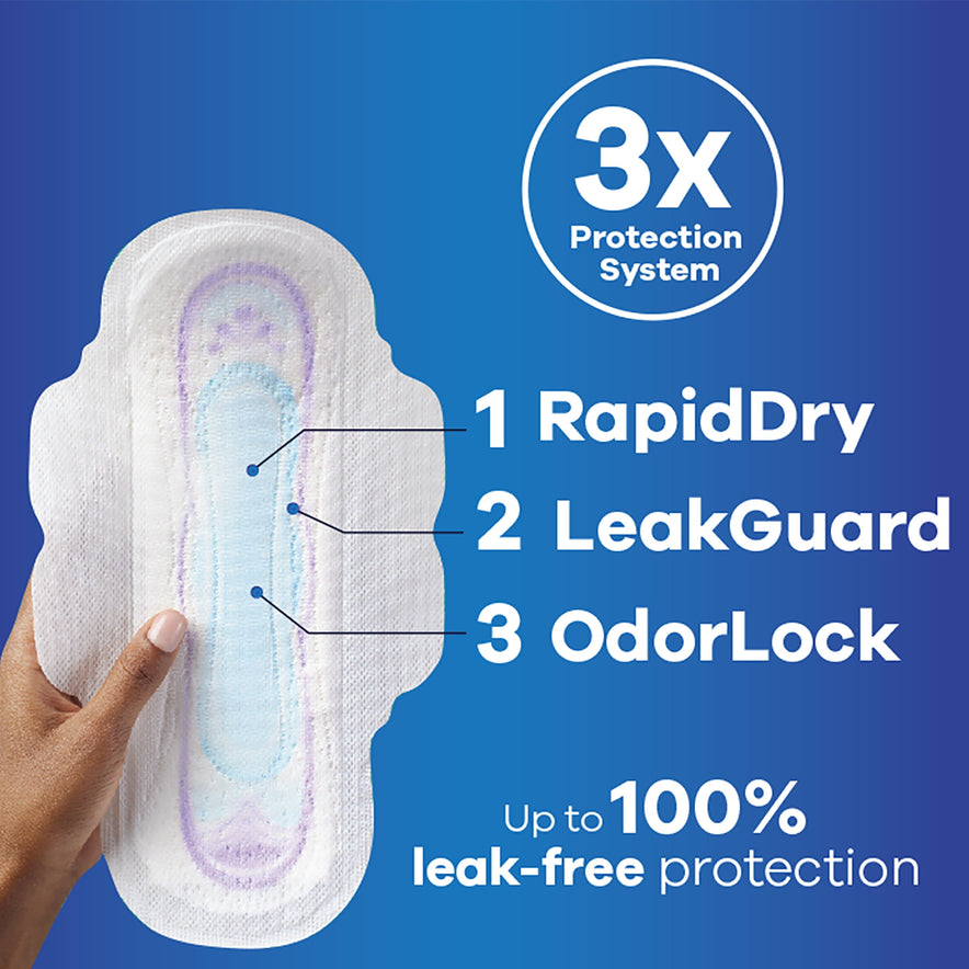FEEL CLEAN & DRY with RapidDRY technology that absorbs in seconds
