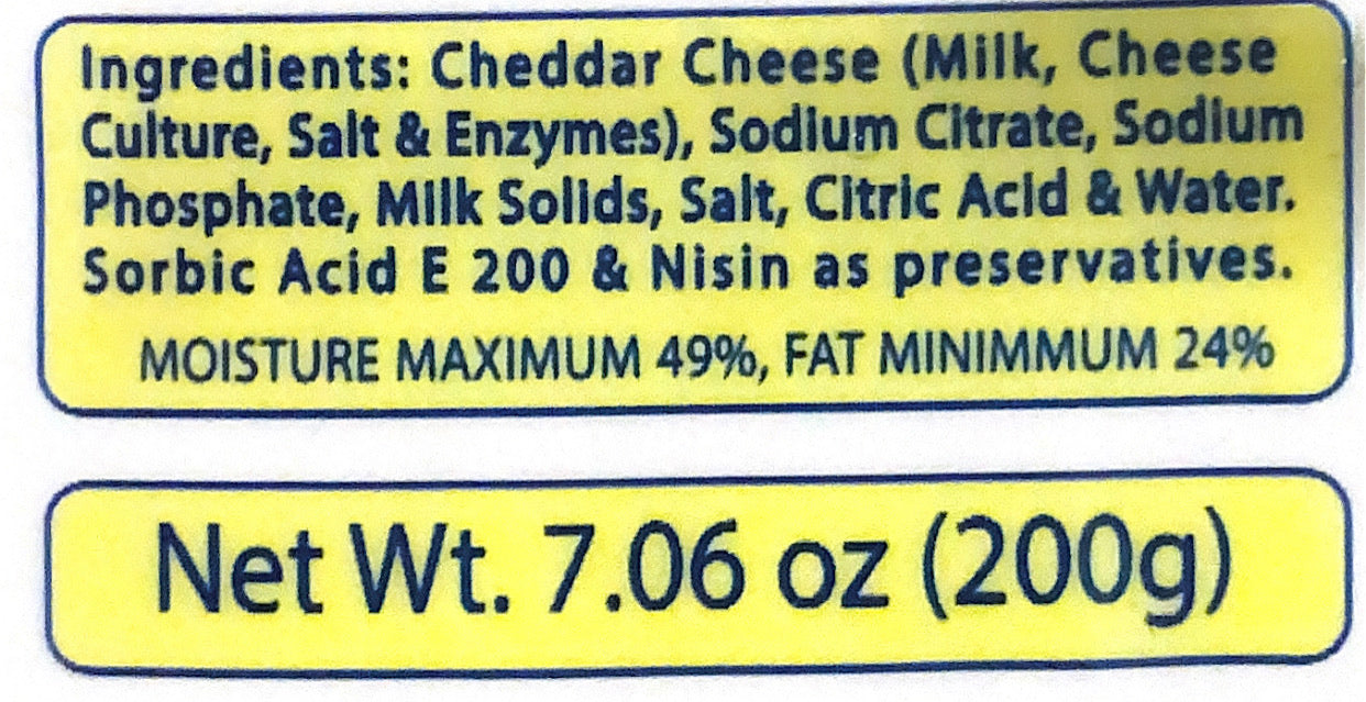 Amul Pasteurised Processed Cheddar Cheese is made from Cheese: Sodium Citrate: Common Salt: Citric Acid: permitted natural color - Annatto. Emulsifier and Class II preservatives. It is made from graded cow/buffalo milk using microbial rennet. Wholesome cheese. Good source of Calcium and milk Proteins.