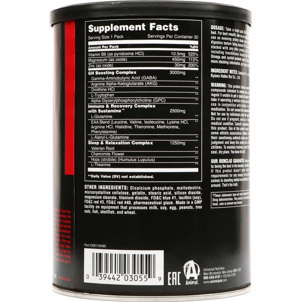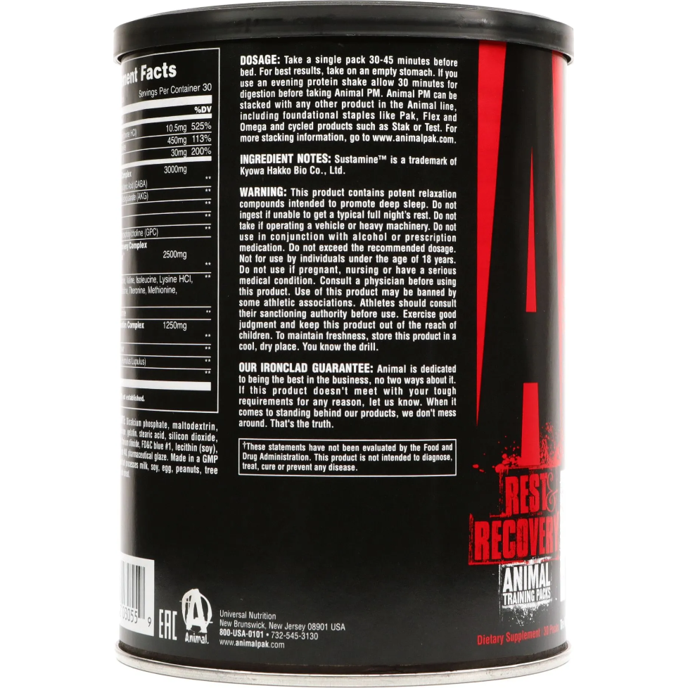 Though critically important to the growth of new muscle and the accrual of strength, rest is too often neglected by athletes seeking to optimize gains. Whether it be the stresses and demands of everyday life or an individual inability to rest soundly, sleep can be difficult to come by at times, and that fact will certainly stand in the way of strength and physique progress. With this crucial element of the growth equation in mind, and our own commitment to make a greater priority of rest and recovery, we at Animal developed Animal PM.