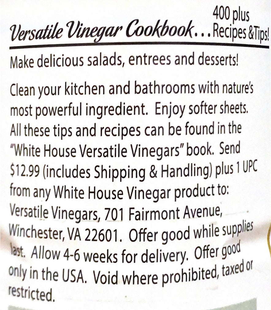 Create tasty dishes and beverages in your own kitchen with this Apple Cider Vinegar, Raw and Unfiltered, 32 fl oz. Trusted by families since 1908, it's made from all-natural apples and crystal-clear water. This White House apple cider vinegar also includes a compound created naturally during the fermentation process that is called "the mother." It is non-GMO project verified and has a uniform pickling and table strength of 5 percent acidity. You can use it to enhance the flavor of dressings, sauces, dips, pickled deviled eggs, slow-cooked beans, spritzers and more. White House organic vinegar is commonly used by dieters to lose weight and as a healthful remedy in helping to reduce blood sugar levels and bad cholesterol.