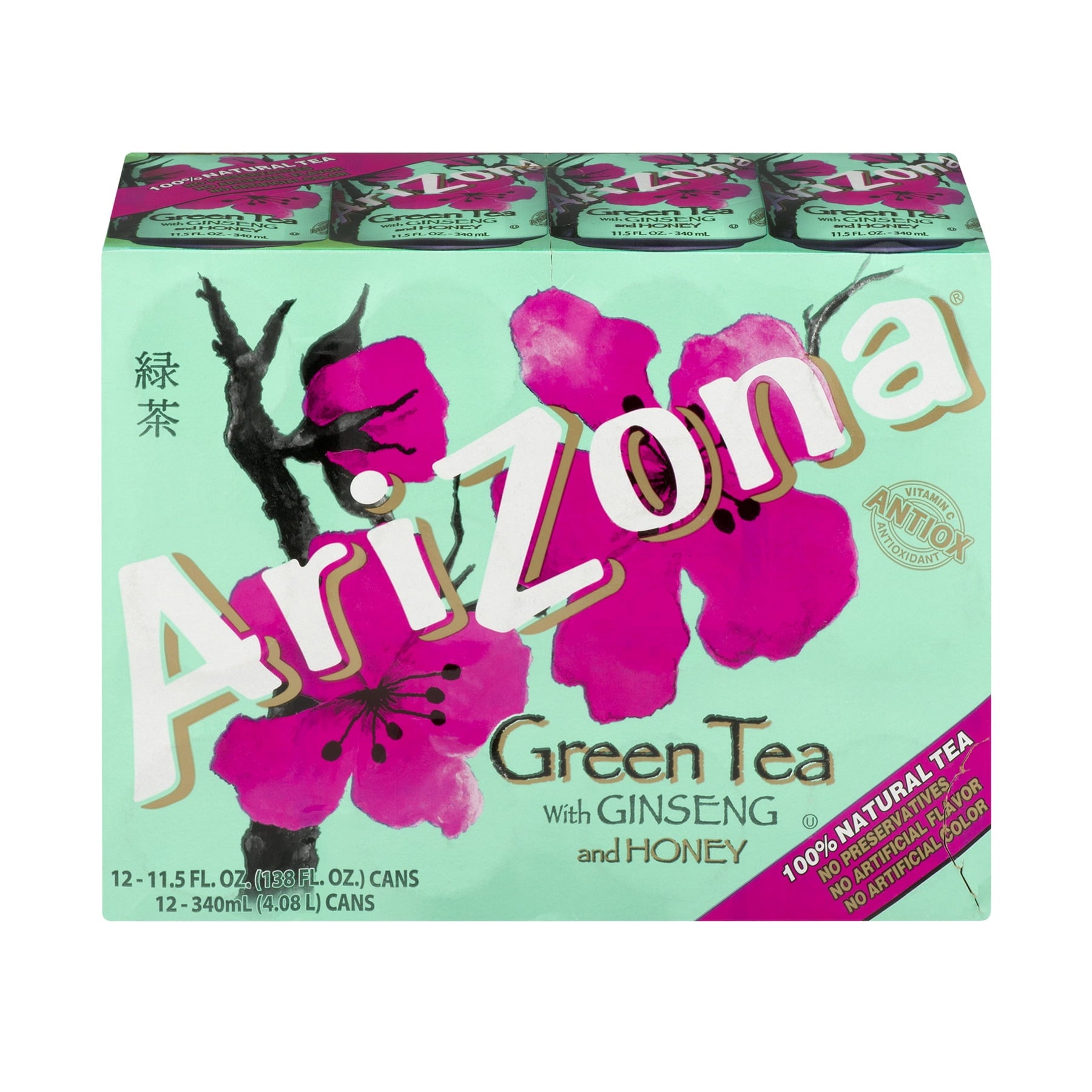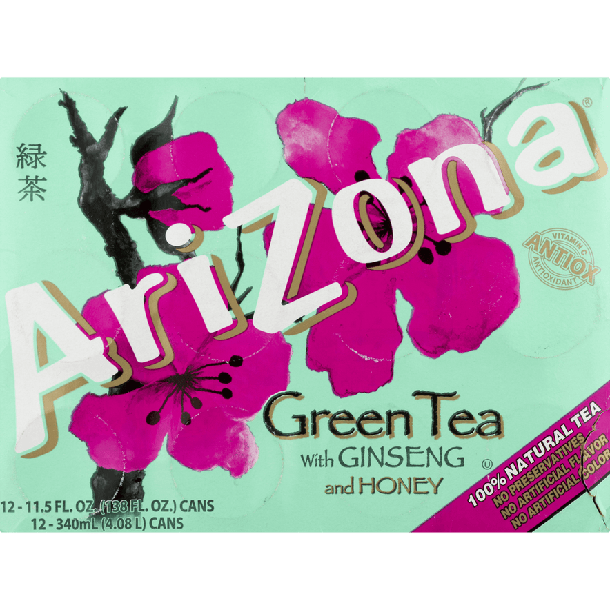 Cool down with an 11.5 fl oz refreshing can of Arizona Green Tea with Ginseng and Honey. It has a sweet and crisp, clean taste without preservatives, artificial flavors or artificial colors. This Arizona green tea 12-pack is rich in vitamin C and has other antioxidants to help boost your immune system. Enjoy one with your lunch or dinner, or at any other time. Drink it chilled from the refrigerator, or pour into a glass with some ice. This Arizona tea with honey is available in your choice of assorted pack sizes.