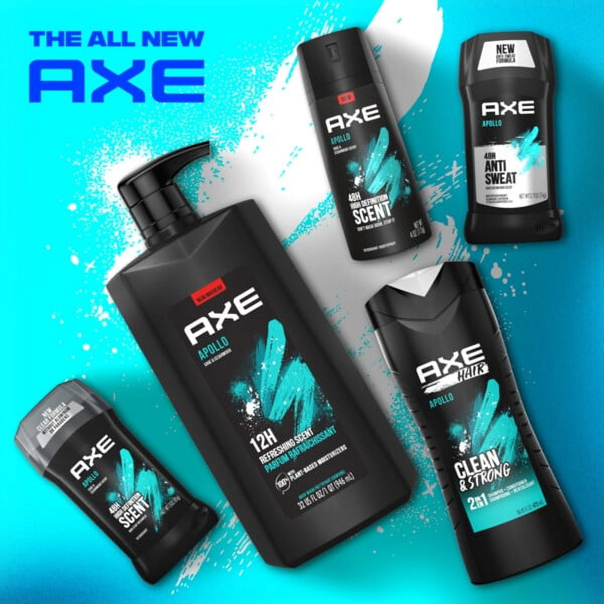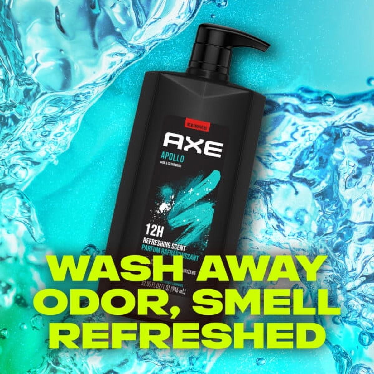 Axe Apollo Refreshing Daily Use Body Wash, Sage and Cedarwood, 32 fl oz, Lather up shower gel and smell the freshness. You never know what's just around the corner. Or who. So you need to smell your best whenever, wherever. Relax. We got you. With a 12-hour refreshing scent, AXE Apollo Body Wash for Men busts bad odor and keeps you smelling shower-fresh. All. Day. Long. Refreshing, effortless, and deliciously foamy, let the crisp notes of sage and cedar wood combine to leave you clean, fresh, and smelling 100% ready. Same great AXE Apollo fragrance with, a fresh new look. But what's on the inside matters too. Wash away odor and smell, refreshed for 12 hours with our first Dual Action men's Body Wash. Plus, our 100% plant-based moisturizers keep your skin feeling irresistibly soft, naturally. All day, all night, no matter what, you're ready. Fresher you, cleaner planet. By 2025, AXE aims for all our packaging to be recyclable or to include recycled materials our men's body wash bottles are already made with 100% recycled plastic. At AXE, we believe that one of the keys to attraction is an irresistible fragrance body wash gel. That's why we're dedicated to giving you all the best tools to make sure that whenever an opportunity comes your way, you're smelling your absolute best. From our deodorant body sprays to our shower gels, our Antiperspirants to our deodorants, we're doing everything we can to make sure no one gets left out of the attraction game. Welcome to the future. It smells amazing. New and upgraded AXE. Smell ready.
