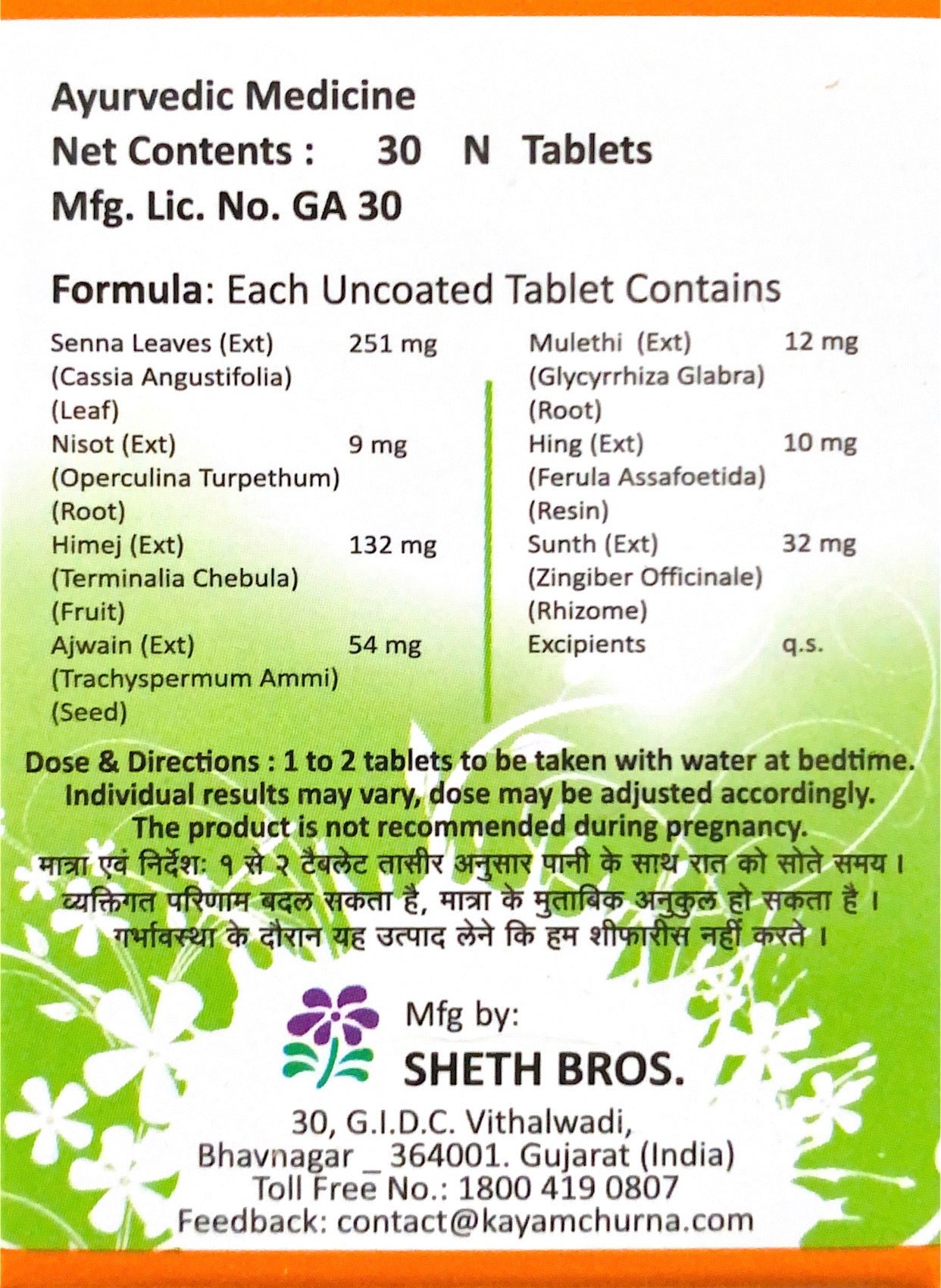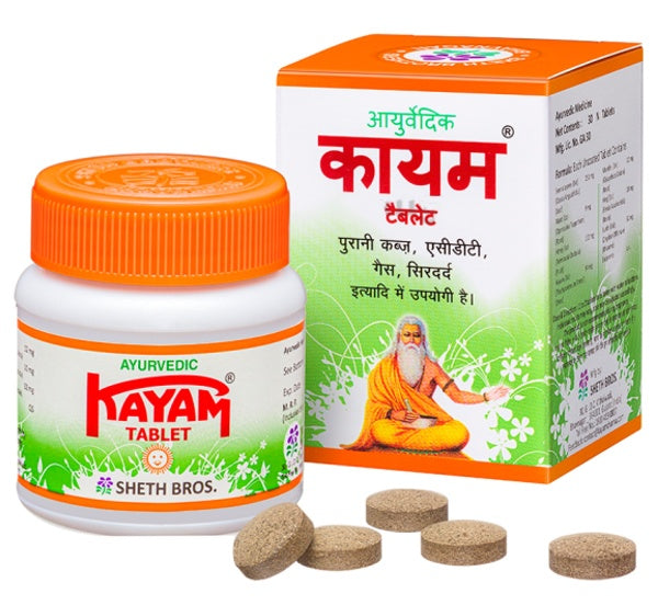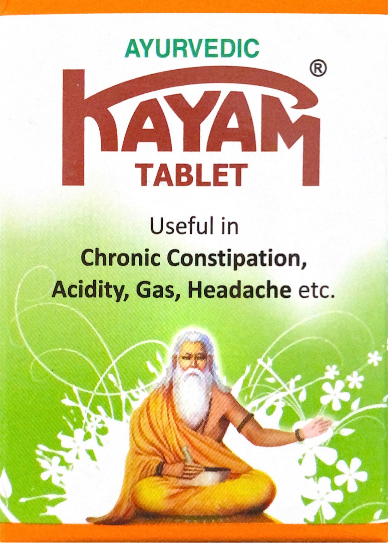 Kayam Tablet is a very famous ayurvedic medicine for constipation. It is not traditional ayurvedic medicine. It is a proprietary ayurvedic medicine. Kayam tablet is claimed to be beneficial in chronic constipation, acidity, gas, headache and mouth ulcer.