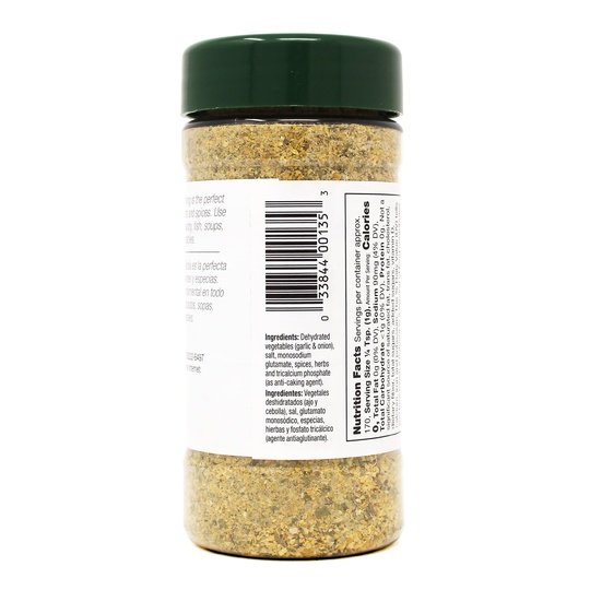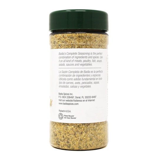 Badia the Original Complete Seasoning adds a unique flavor to your foods. It contains a blend of onion and garlic with specially selected spices to enhance the natural flavor of your favorite dishes. The taste is similar to what is found in many Latin dishes. Sprinkle it on meat, poultry and fish as well as vegetables to suit your taste. It's also ideal when preparing soups, stews and sauces. Keep several of these 6 oz containers of gluten-free seasoning in your kitchen pantry for everyday meals. This product is a suitable choice for individuals who follow a kosher diet. Explore other spices from Badia, such as curry powder, ground black pepper, lemon pepper, Spanish saffron, oregano, cumin, basil and more (each sold separately).