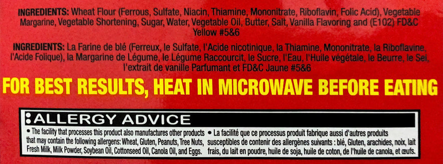 Fortified Wheat Flour (Wheat Flour, Calcium Carbonate, Iron, Niacin, Thiamin), Rapeseed Oil, Palm Oil, Palm Fractions, Water, Sugar, Glucose, Salt, Emulsifier (E475), Flavourings and Colours (E160b, E161b)