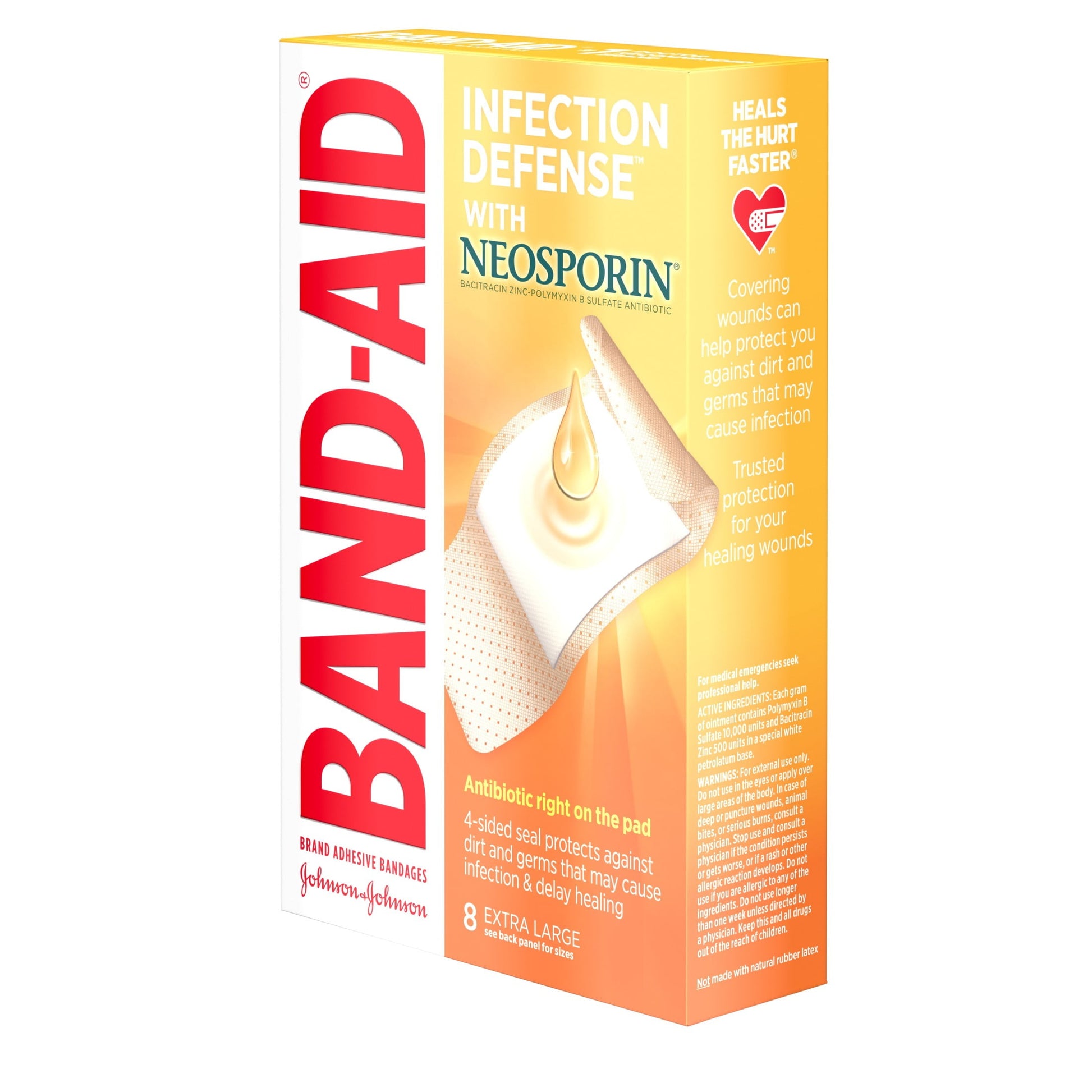8-ct. of extra large sterile bandages in this pack of Band-Aid Brand Adhesive Bandages Infection Defense with Neosporin