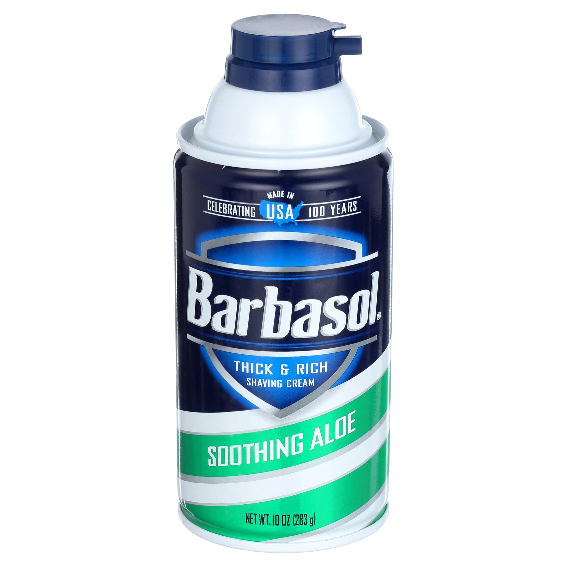Few shaving creams are as trusted as Barbasol, honored as America's premium shave cream for generations. This variety of Barbasol shaving cream features aloe vera to soften and soothe skin as you shave, for superior lubrication and post-shave comfort. The cream forms a thick and rich lather, promoting better glide with every stroke, for a smooth finish. Barbasol Soothing Aloe shaving cream comes in a CFC-free, recyclable aluminum can with a rust-proof bottom. Each can contains 10 oz.