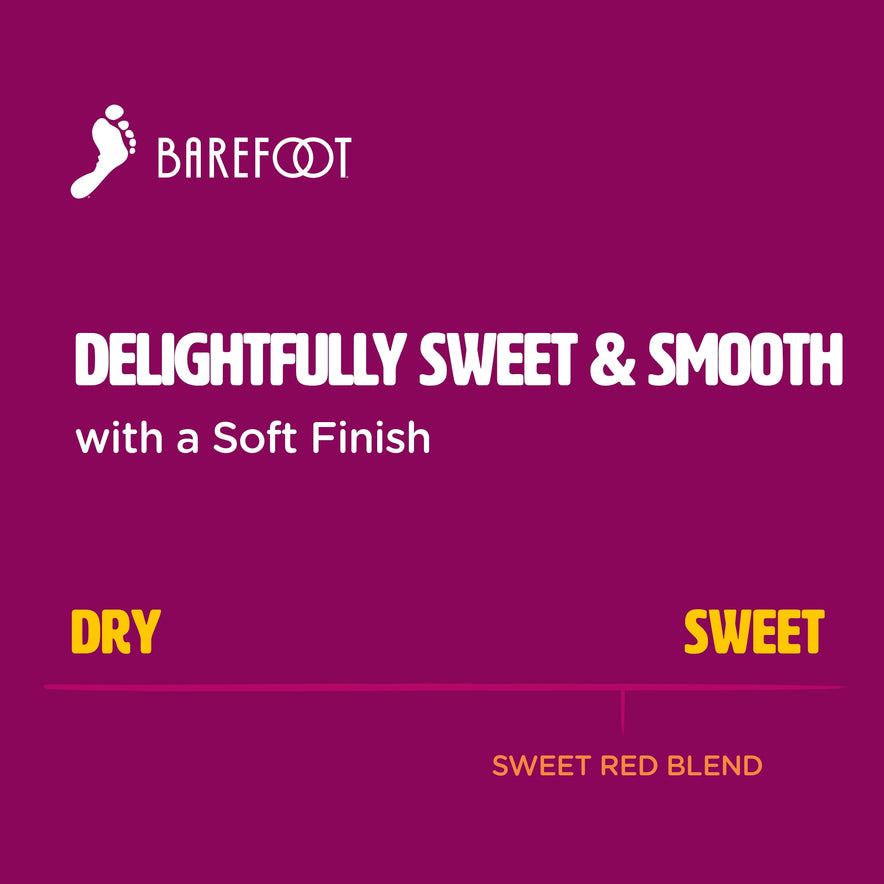 Barefoot Sweet Red Blend Red Wine features explosive notes of sweet raspberries, ripe plums and juicy cherries. Offering a delicious combination of Zinfandel, Pinot Noir, Barbera, Grenache and Petite Sirah, this Barefoot wine offers a smooth, soft finish. This California wine is best served chilled. This sweet wine comes from Barefoot, the most awarded wine brand in US competitions. Let's get Barefoot. Comes in a glass bottle that is 100% recyclable. 148ml.