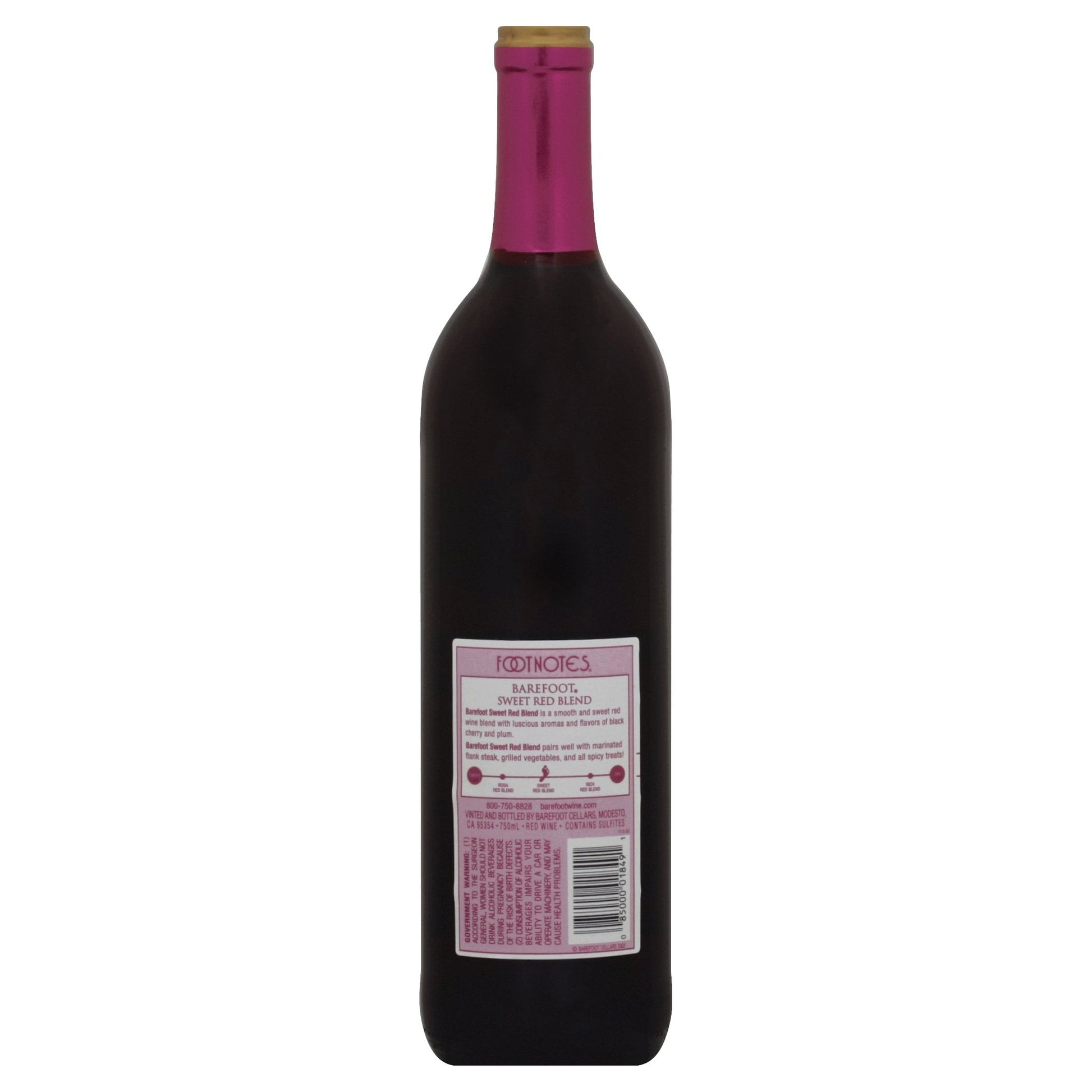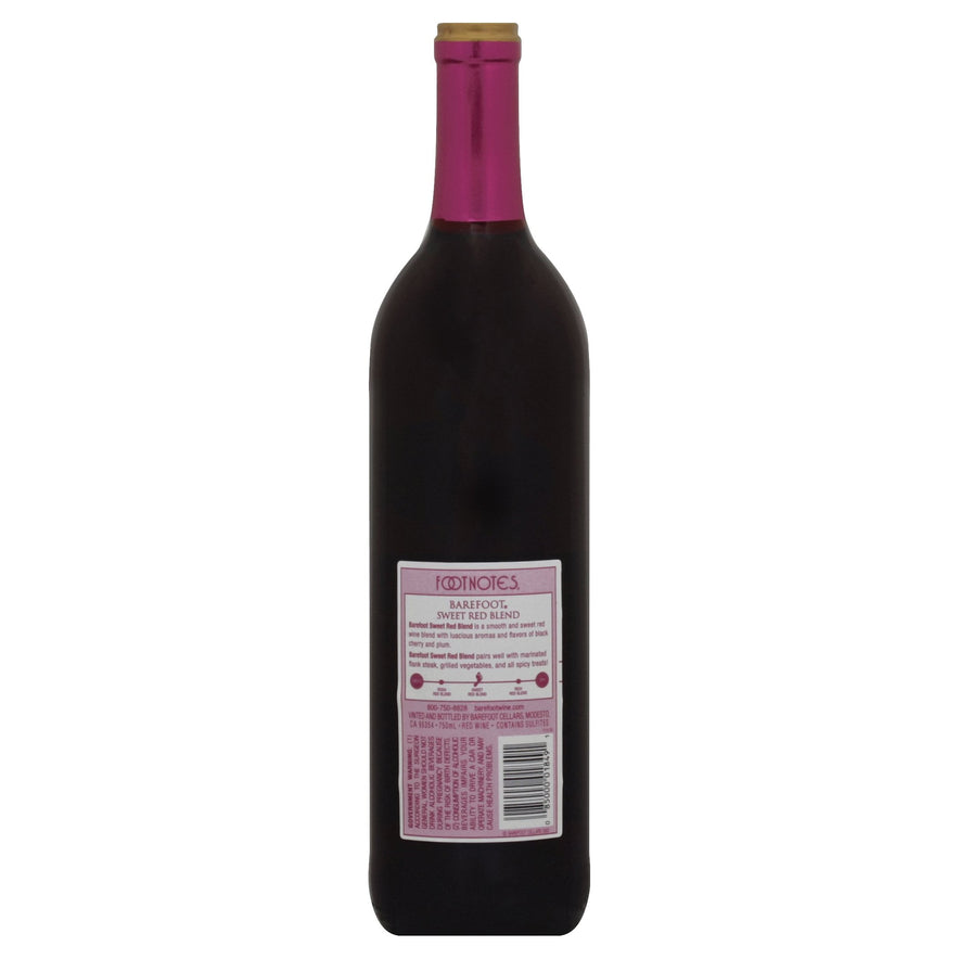 One 750ml glass bottle of Barefoot Sweet Red Blend Red Wine