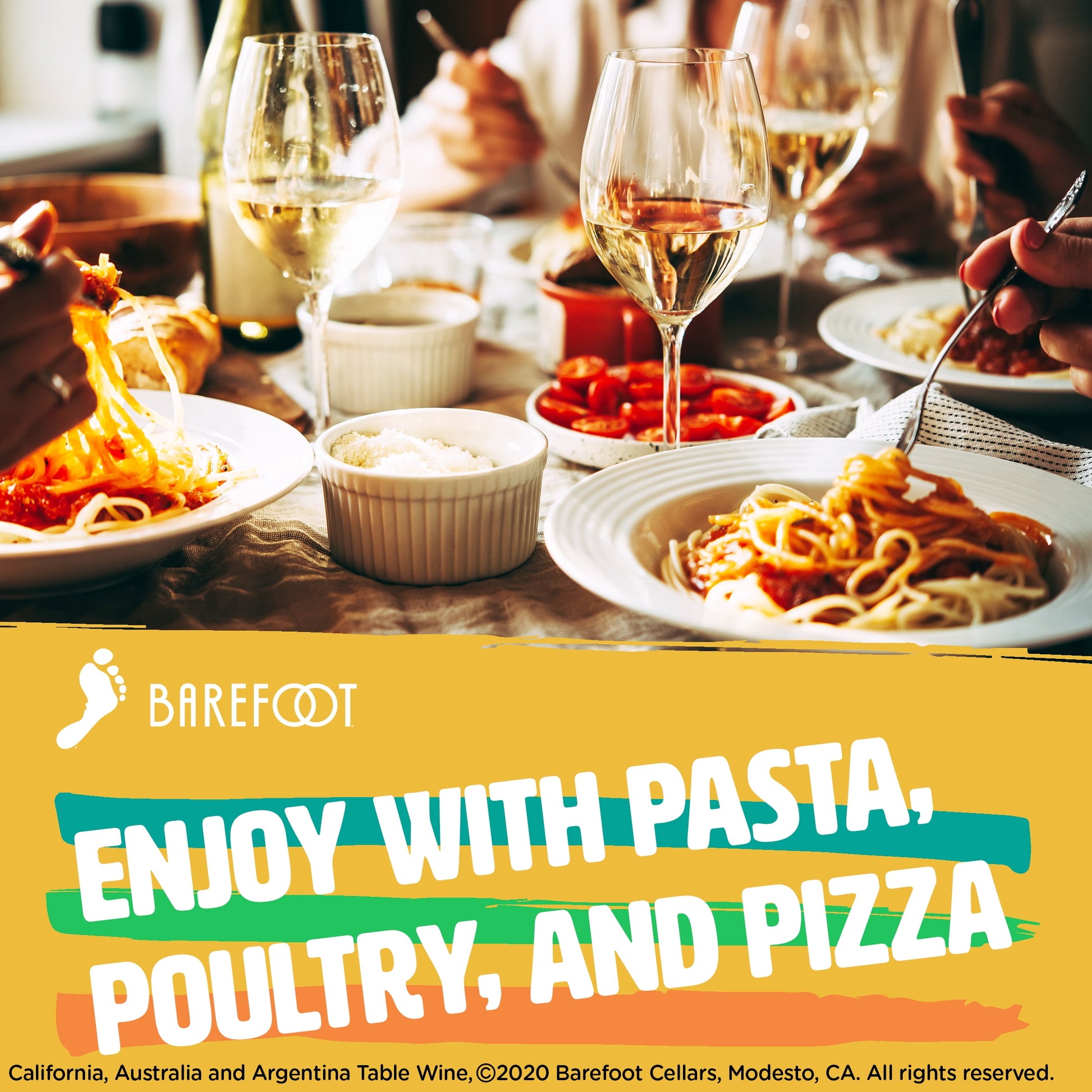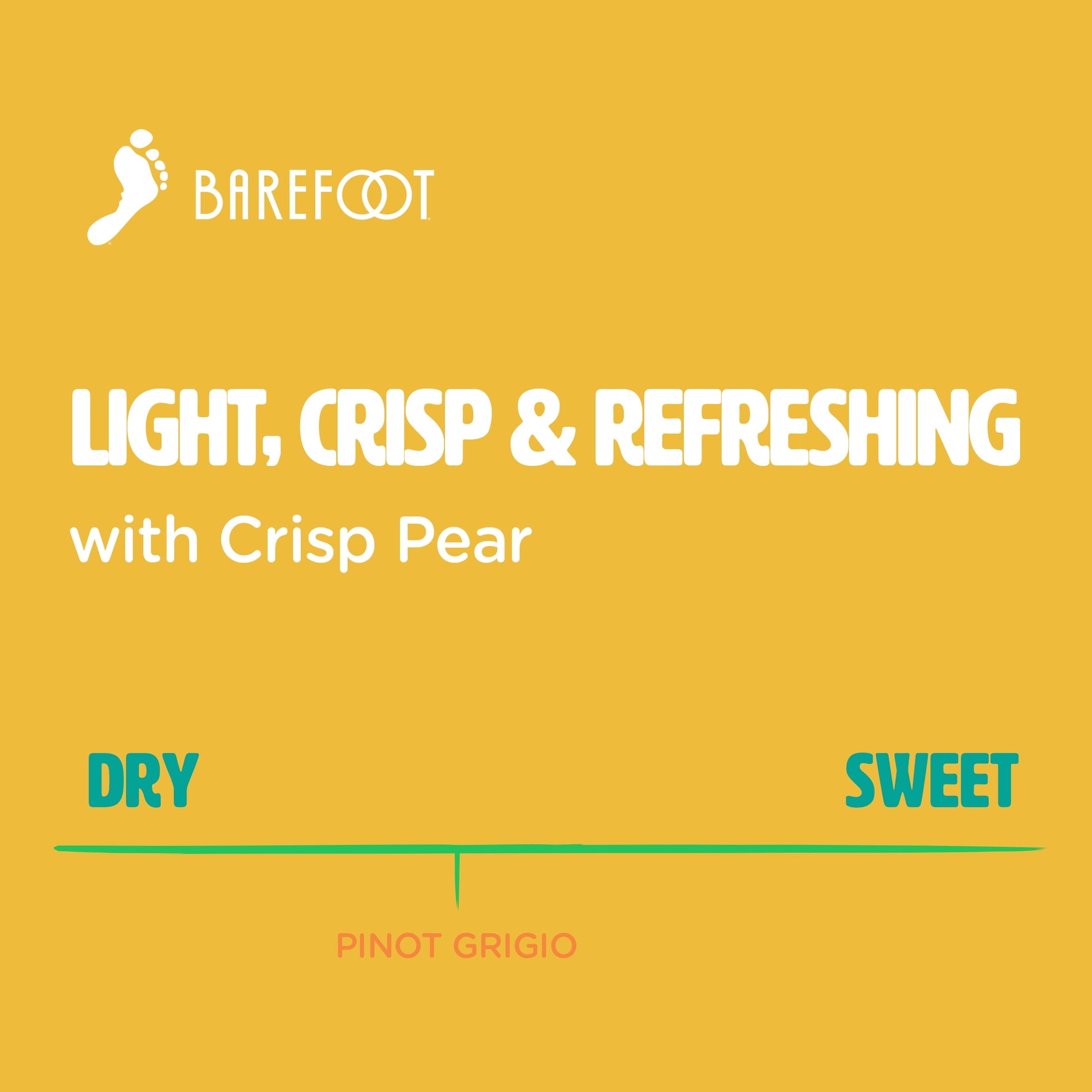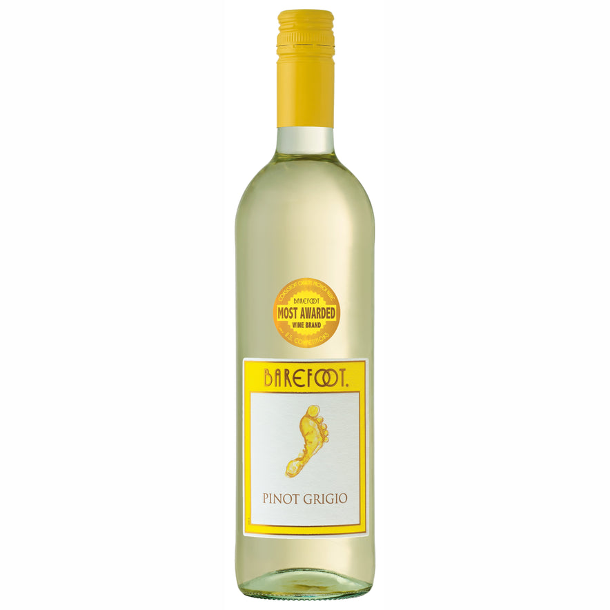 Barefoot Pinot Grigio California White Wine features tart notes of green apples and the juiciness of fresh white peaches along with the floral aroma of jasmine. Crisp and refreshing, this light bodied Pinot Grigio wine pairs perfectly with traditional dishes like pasta, poultry and pizza. Ideal for sharing at outdoor parties on warm summer days, this Barefoot wine is best served chilled. This 750 mL glass bottle comes with a screw cap for easy opening and secure storage. This Pinot Grigio comes from Barefoot, the most awarded wine brand in US competitions. Let's get barefoot.