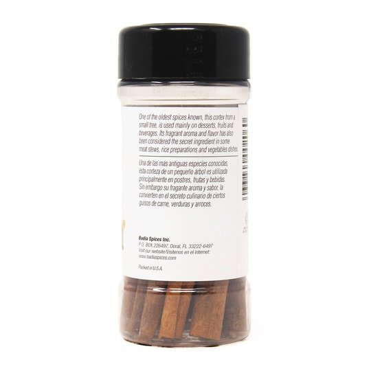 A gluten free food. One of the oldest spices known, this cortex from a small tree, is used mainly on desserts, fruits and beverages. Its fragrant aroma and flavor has also been considered the secret ingredient in some meat stews, rice preparations and vegetables dishes. Visit our website: www.badiaspices.com. Please recycle! Packed in USA.