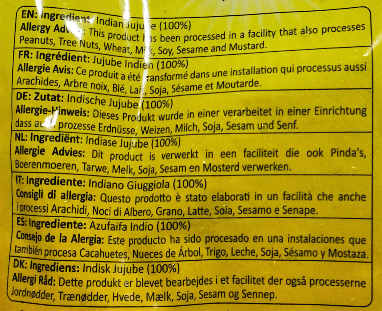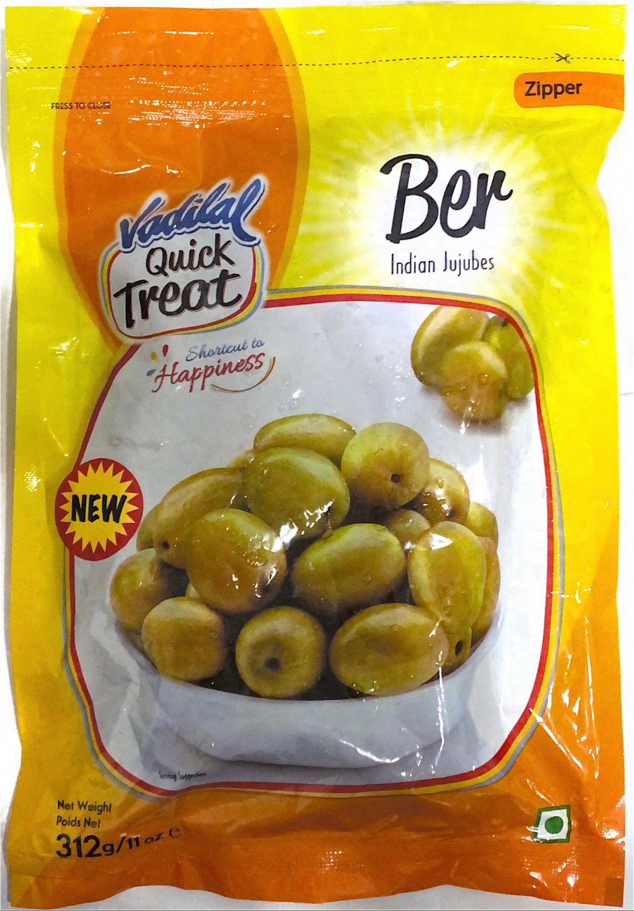 Ber fruit are small, round to oblong shaped fruits, with thin, glossy skin. They ripen from a light green or yellow to an orange-red color. The fruit can be consumed both slightly under-ripe and ripe. When under-ripe, the white flesh is dense, crisp and astringent, while fully ripe fruits are more spongy with a somewhat mealy texture and muted floral flavor. Each fruit contains a rough, inedible, central stone. Ber fruits grow on small, bushy trees that can reach 12 meters in height.
