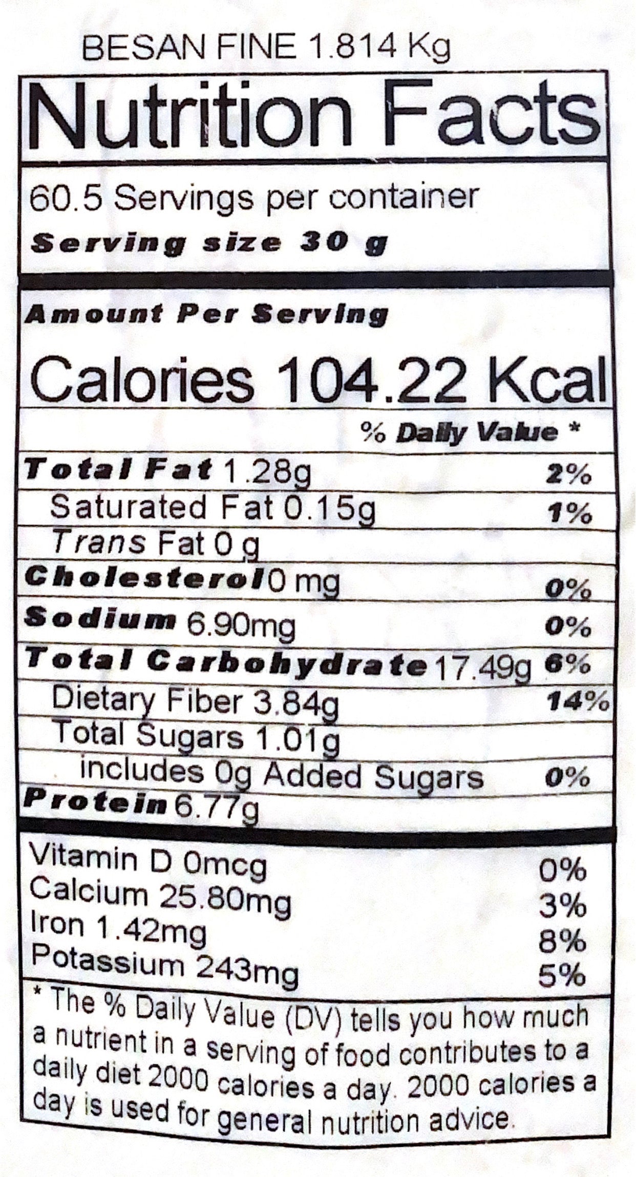Gram flour or besan is a pulse flour made from a type of ground chickpea called the gram chickpea. It is a staple ingredient in the cuisine of the Indian subcontinent, including in Indian, Bangladeshi, Burmese, Nepali, Pakistani, and Sri Lankan cuisines.