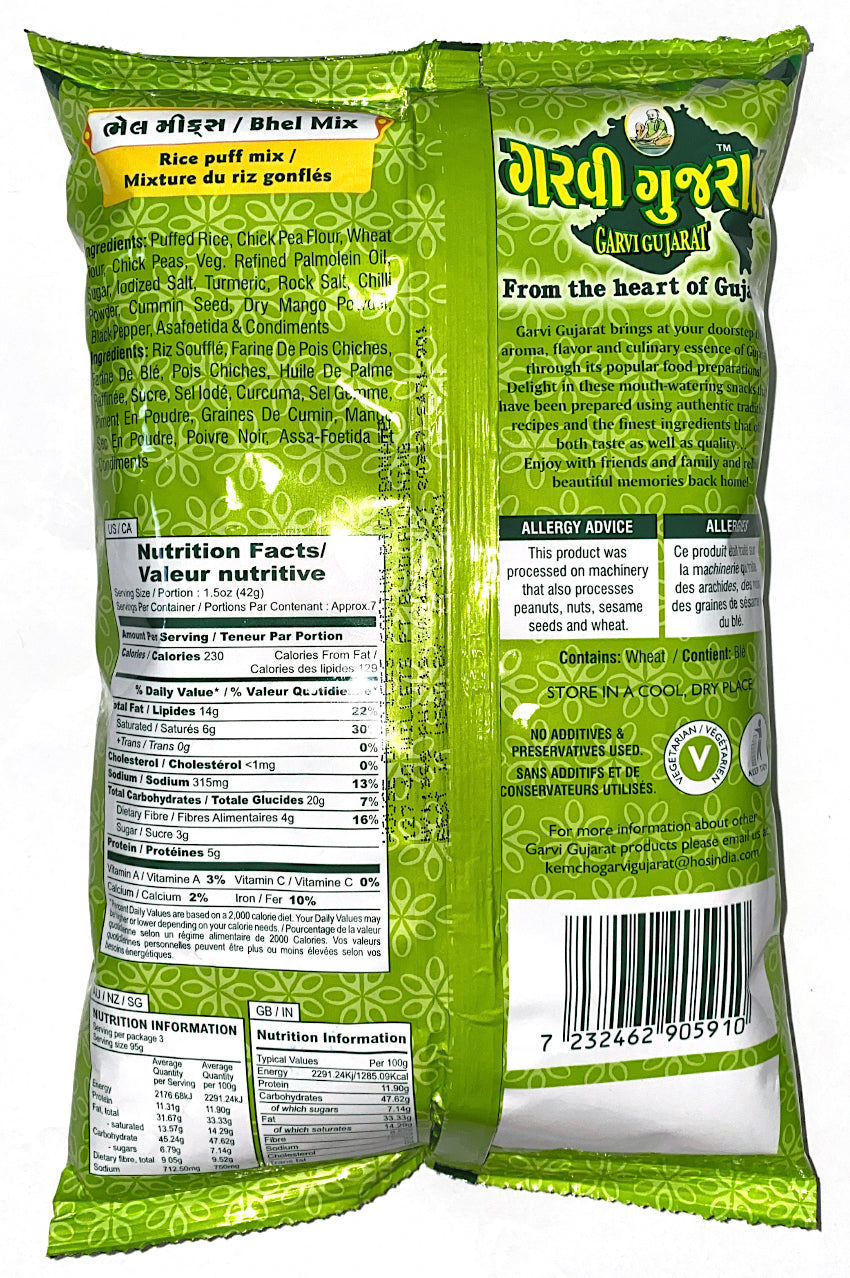 Garvi Gujarat Bhel Mix is a snack that will enjoy eating as much as the joy of making it. It is a tasty mix of puffed rice, lentils and sevs. It is with the exotic chutneys provided in the pack itself. It is a complete snack for family and friends.