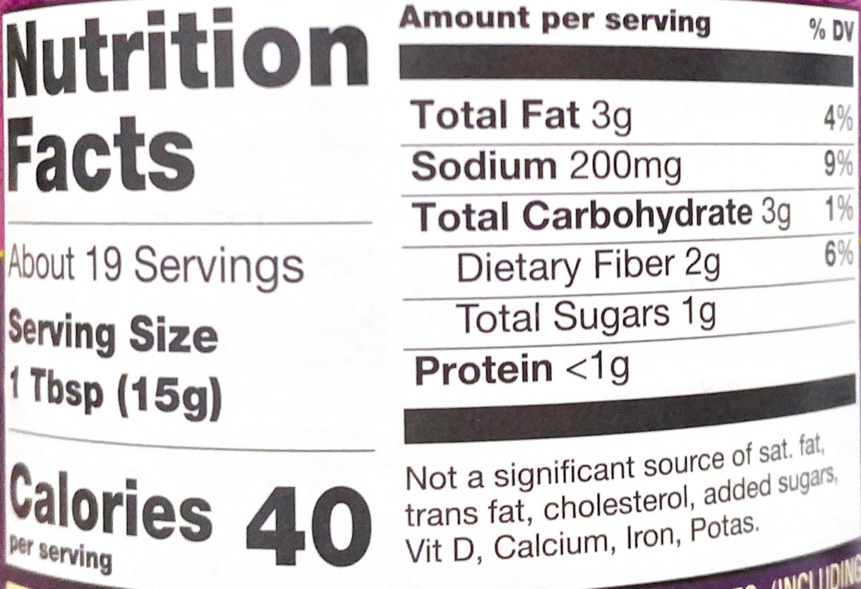 No Artificial flavors or colors, Gluten Free, Vegetarian.