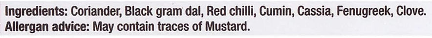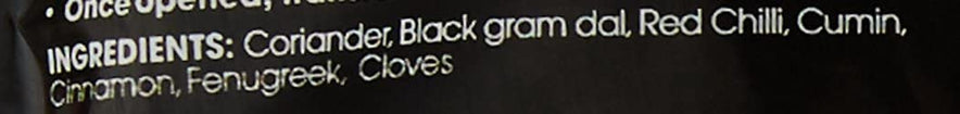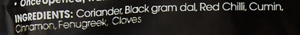 Coriander, Black Gram Dal, Red chilli, Cumin, Fenugreek, Cassia, Clove