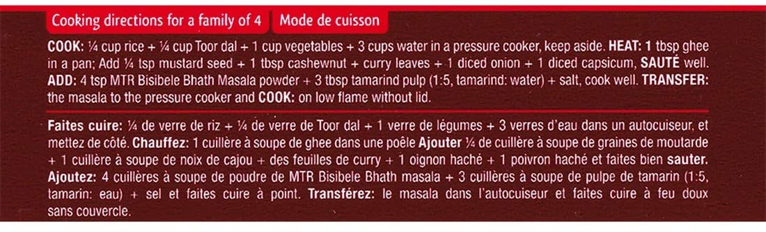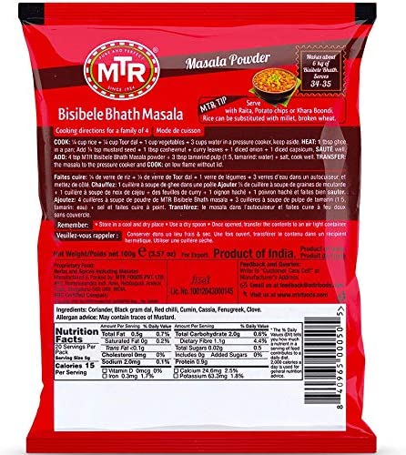 3/4 cup rice + 1/4 cuptoor dal + 1 cup vegetables - 3 cups water in a pressure cooker, keep aside. Heat: 1 tbsp ghee in a pan. Add 1/4 tsp mustard seed + 1 tbsp cashewnut + curry leaves + 1 diced onion + 1 diced capsicum. Saute well. Add 4 tsp mtr bisbele bhath masala powder + 3 tbsp tamarind pulp (1:5, tamarind: water) + salt, cook well transfer: the masala to the pressure cooker and cook: on flame without lid.