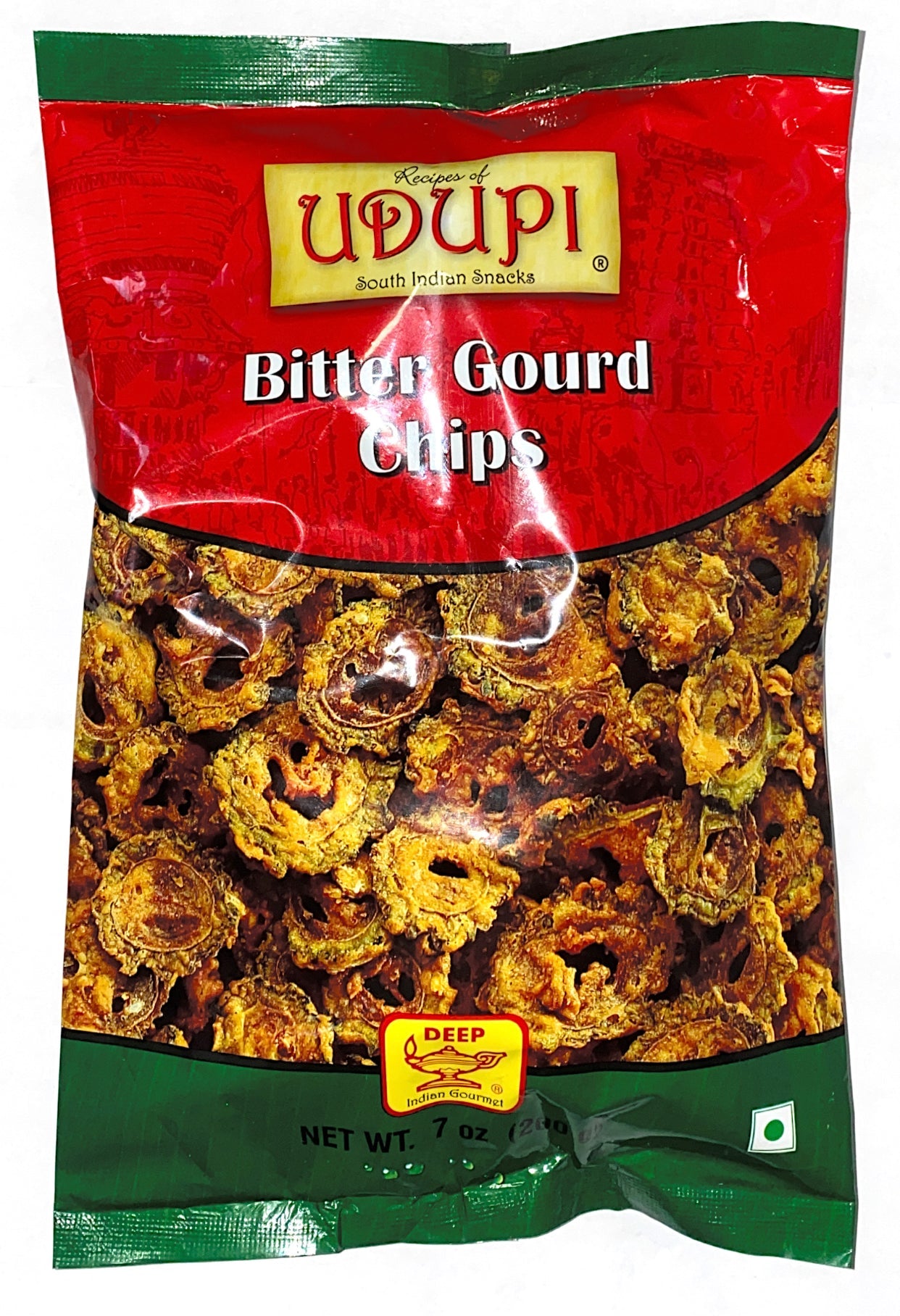Thinly sliced Indian bittergourd, coated with chickpea flour and blended with spices