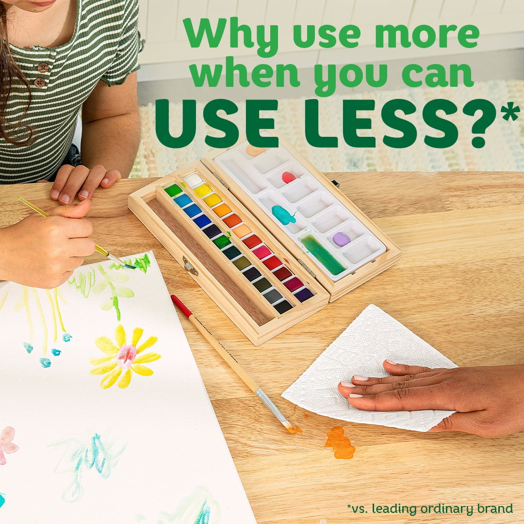 Spilled your drink? Quick! The Quicker Picker Upper. Be ready to tackle messes and spills with Bounty Paper Towels! Each sheet is 2x more absorbent, so you can use less and pick up spills and messes quicker than the leading ordinary brand. That's why Bounty is the Quicker Picker Upper! Bounty Paper Towels are available in two sheet sizes, Full Sheet and Select-A-Size, so you can choose which option works best for you. Bounty Select-A-Size towels are versatile, so you can choose your sheet size depending on your mess. *vs. leading ordinary brand