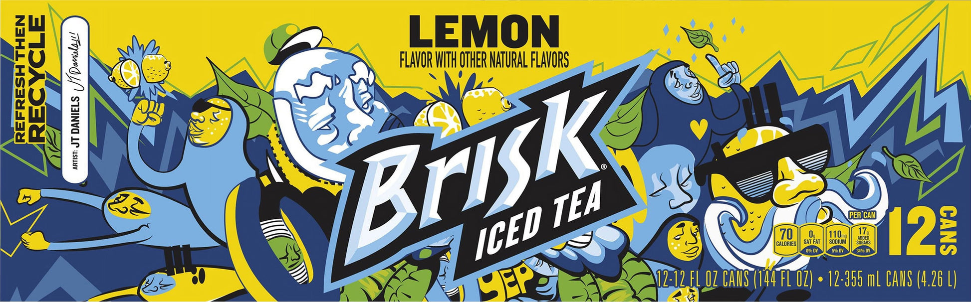 Brisk Lemon Iced Tea, bold lemon flavor, 12 fl oz, 12 Pack Cans
