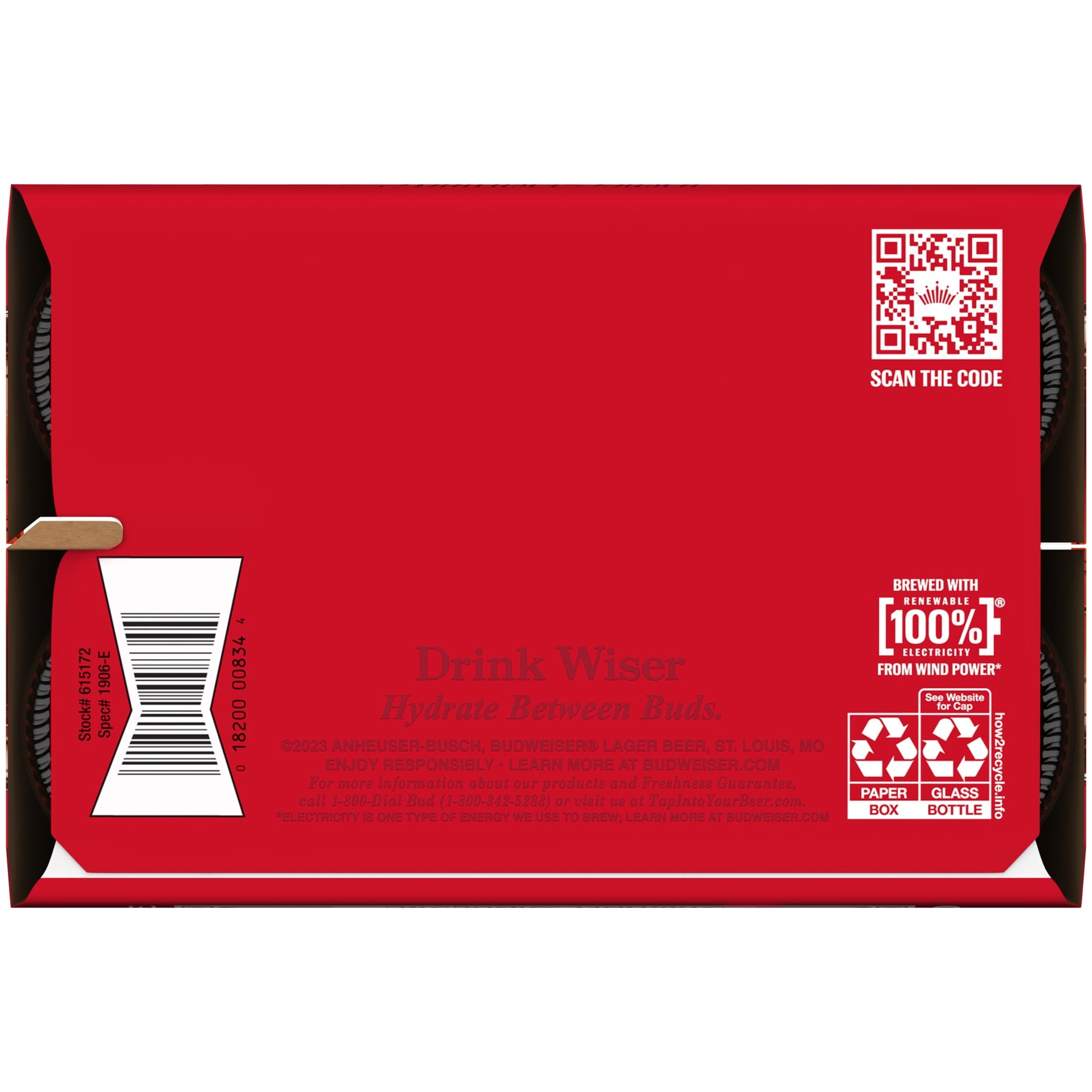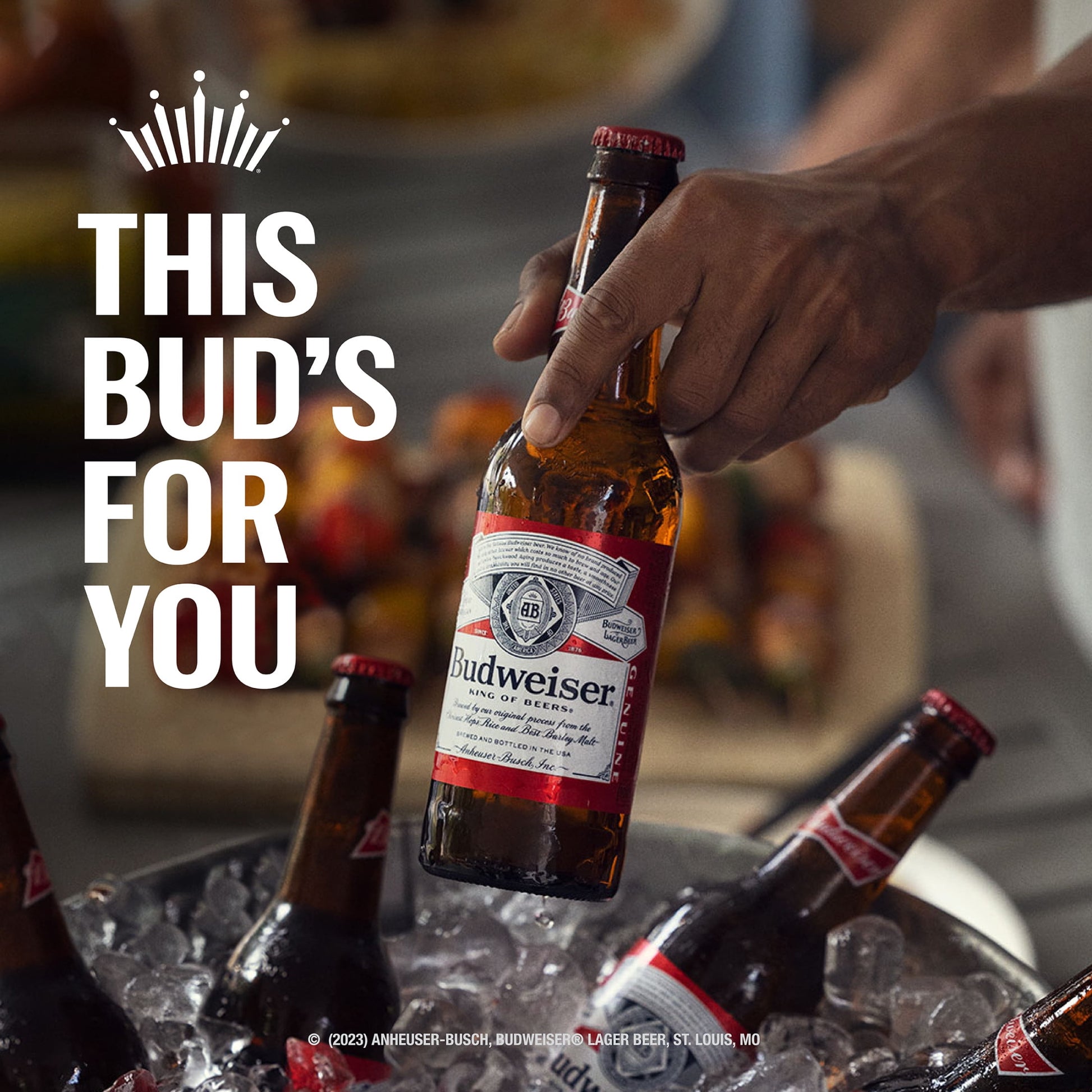 Budweiser beer is a medium-bodied, American-style lager beer. Brewed with high quality barley malt, a blend of premium hop varieties, fresh rice and filtered water, this American beer is crisp and full of flavor. Budweiser beer has 5% ABV and contains 145 calories and zero grams of fat per serving. Every occasion calls for a Budweiser; enjoy a cold beer while watching the game or grab a six pack of beer when your barbecues or social gatherings need refreshing drinks. This lager beer is the perfect companion to pizza, burgers and fried chicken, but don't let the pairings stop there. The beer bottles and package make this beer easy to transport wherever Budweiser is needed.