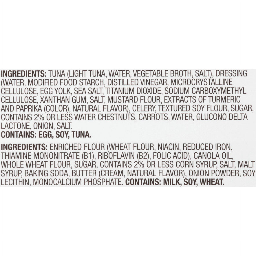 PROTEIN SNACKS: This delicious Bumble Bee tuna salad and crackers kit is a good source of protein (See product packaging for nutrition information)