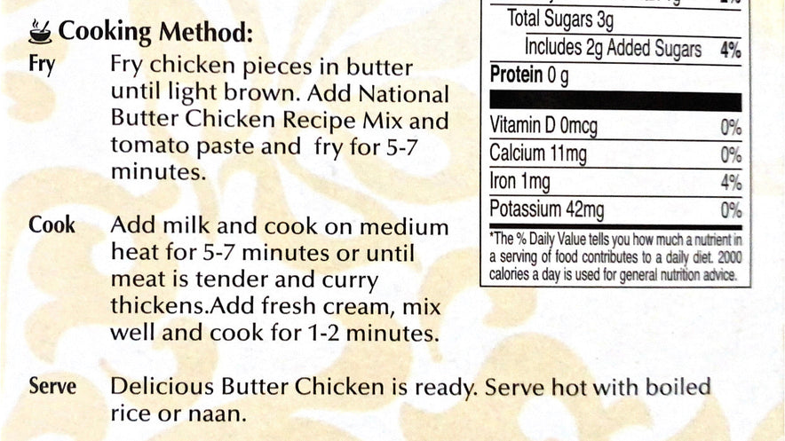 NATIONAL Butter Chicken 50 gm | Make the famous ‘Butter Chicken’; with this ready to use spice mix. All you need is the basic ingredients (mentioned on back of the box) and this spice pack with the desire and appetite to have this mouthwatering dish ready. Enjoy!!
