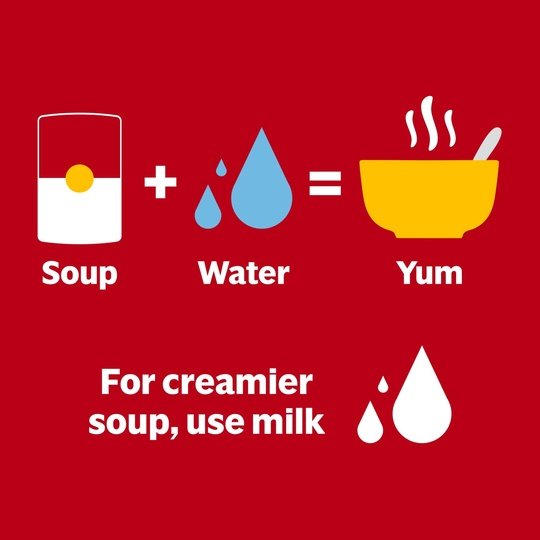 Cozy up with a steamy bowl of Campbell's Condensed Tomato Soup. A family favorite for generations, each can of this tomato soup is crafted with 6 farm-grown tomatoes cooked to perfection. The result is a soul-warming soup that brings a smile with every spoonful. Top it with oyster crackers or Goldfish, season it with fresh herbs, or pair it with a classic grilled cheese sandwich. The fat-free soup also works as the start of delicious recipes like beef taco skillet. This vegan soup is a year-round pantry staple and the perfect comfort food on a chilly day or when you're feeling under the weather. Simply mix this Campbell's soup with 1 can of water or milk and microwave on high for 2.5 to 3 minutes in a covered, microwave-safe bowl, or heat in a pot on the stove, stirring occasionally. Each 10.75 oz recyclable can contains about 2.5 servings of microwave soup and features an easy-open pop top and a non-BPA lining. From canned Tomato soup to Cream of Mushroom and everything in between, Campbell's makes delicious soups in flavors your family knows and loves with quality, farm-grown ingredients in every can. M'm! M'm! Good! This product is packaged in a metal can, and is shelf-stable/ambient.
