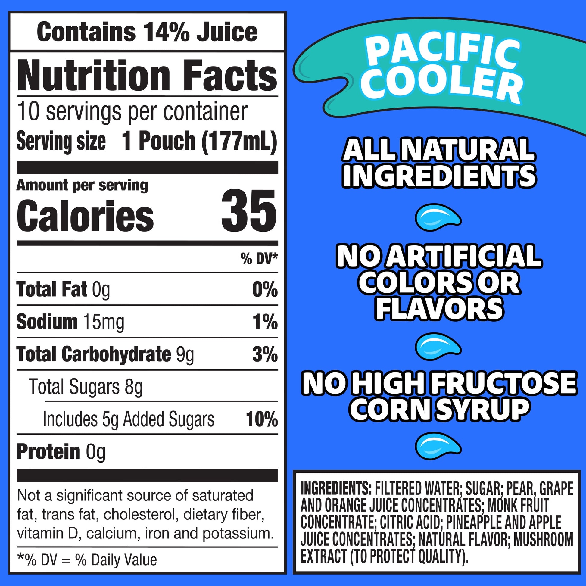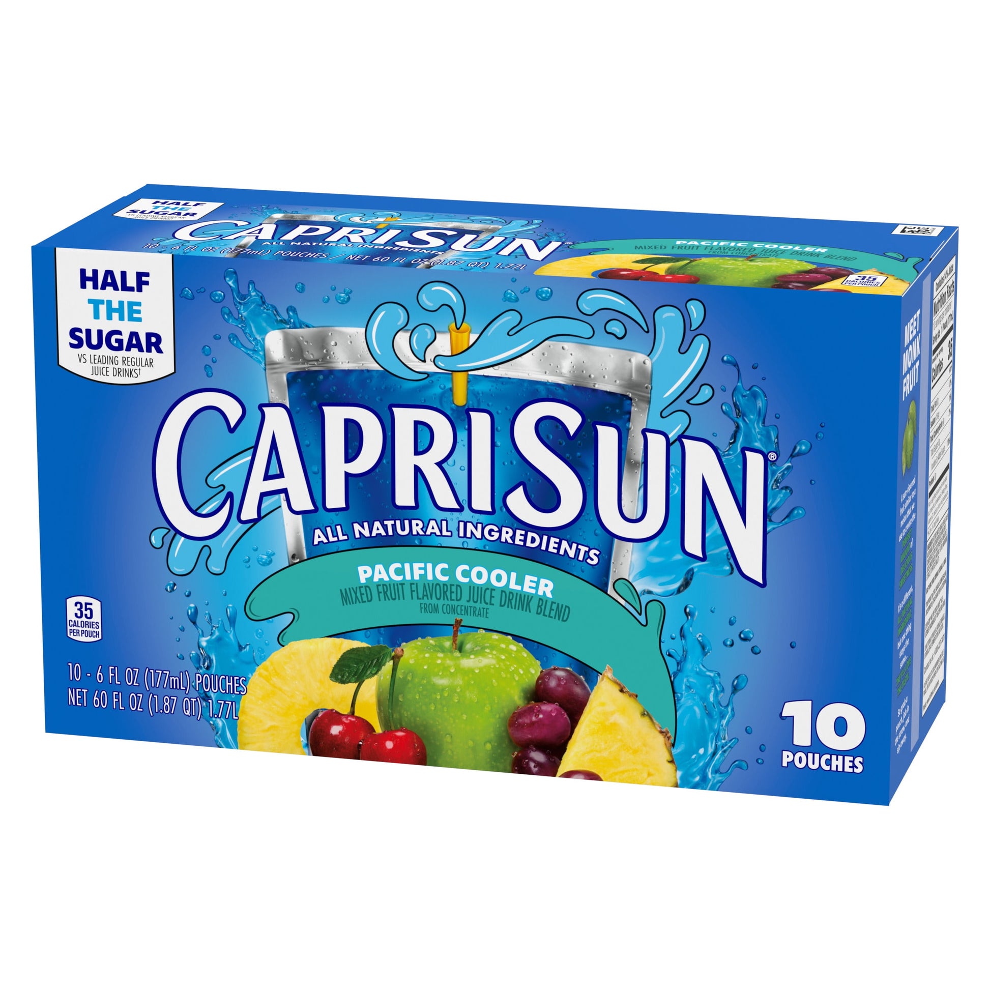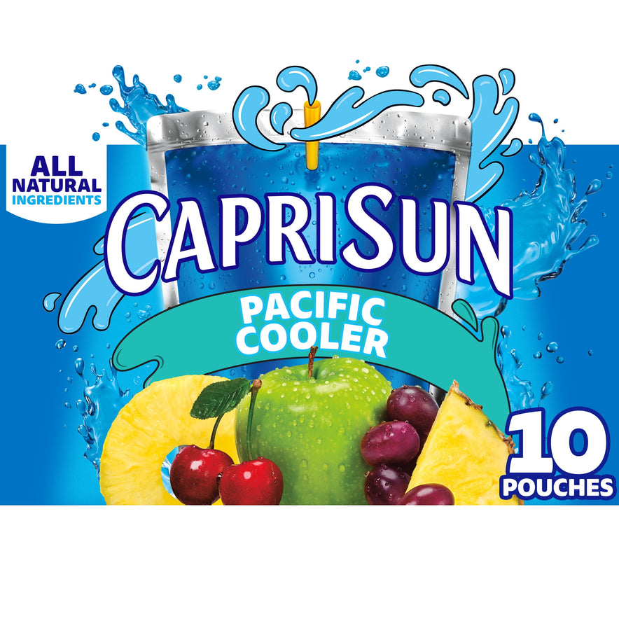 Grab a little juicy freedom with Capri Sun Pacific Cooler Mixed Fruit Flavored Juice Drink Blend. Made with the all-natural sweetener, monk fruit, our Pacific Cooler drink has a fruity flavor of apples and grapes that's joyfully refreshing. Kids love the taste of Capri Sun, made with all natural ingredients. We never add artificial flavors, colors, preservatives or high-fructose corn syrup to our pouches. Each 6 fluid ounce pouch in our 10 count box comes with a straw, so they're ready for kids to squeeze and sip. Unleash kids' independence with a ready-to-drink Capri Sun.