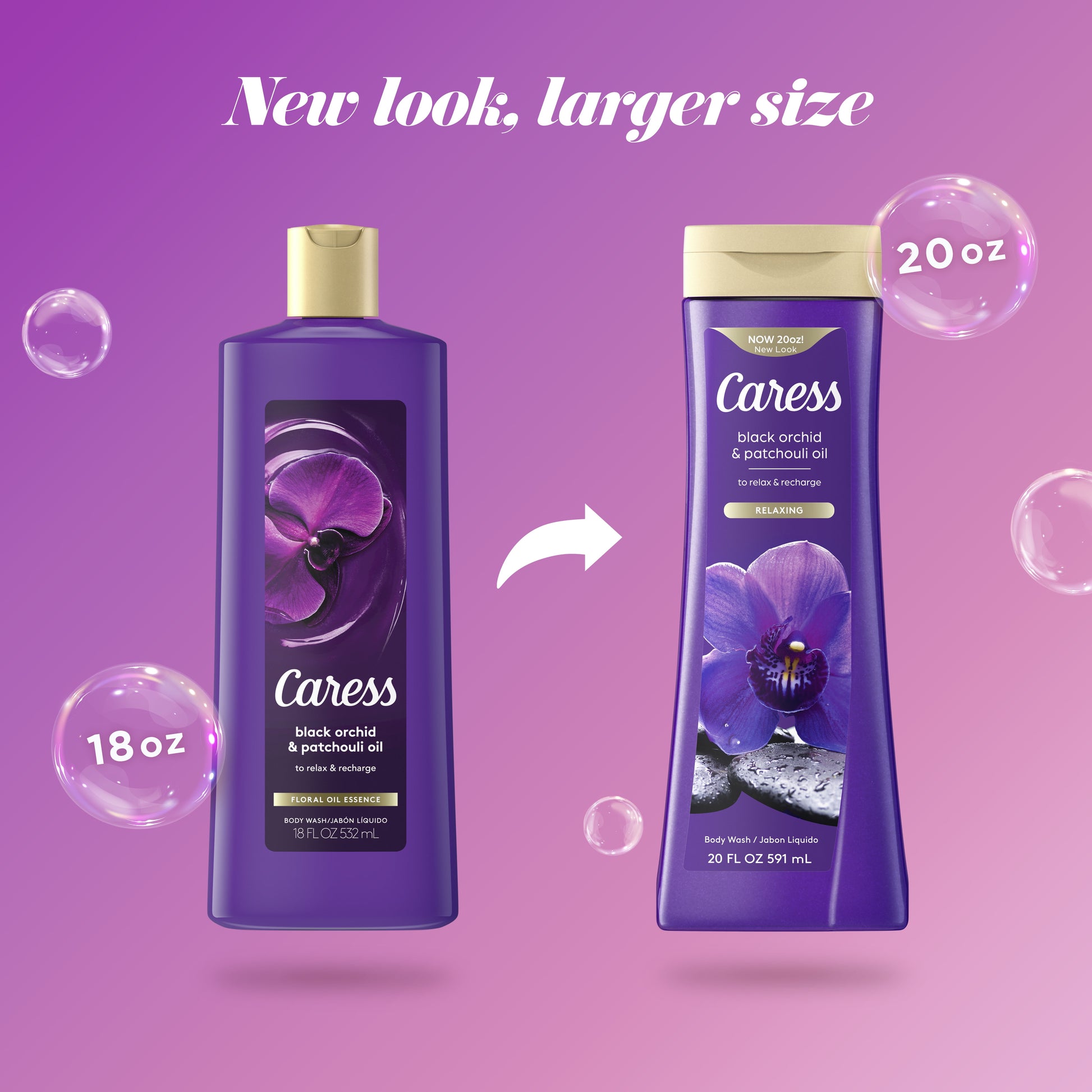 Relax and recharge every day with Caress Black Orchid & Patchouli Oil 20 oz Body Wash! Spark your senses with the exotic fragrance and lush lather of this relaxing, fragrant body wash with black orchid and patchouli oil to leave you feeling recharged. Caress Black Orchid & Patchouli Oil body soap energizes your senses with sweet, warm aromas and exotic floral undertones. The rare scent of black orchid harmonizes with the sweet earthiness of patchouli oil. Caress skin care body wash doesn't just delight your senses—it also washes away dirt and bacteria while leaving your skin fragrant! Plus, it cleans hands just as effectively as hand soap. This scented body soap helps turn every shower into a blissful experience that leaves your skin delicately fragranced long after you shower. Caress Black Orchid & Patchouli Oil is a lush women's moisturizing body wash that leaves you relaxed and recharged and your skin delicately fragrant. Create a sensorial escape with Caress! Use every day for a multi-sensory experience that leaves you feeling uplifted. Work into a rich lather, and let your mind transcend to its happy place.