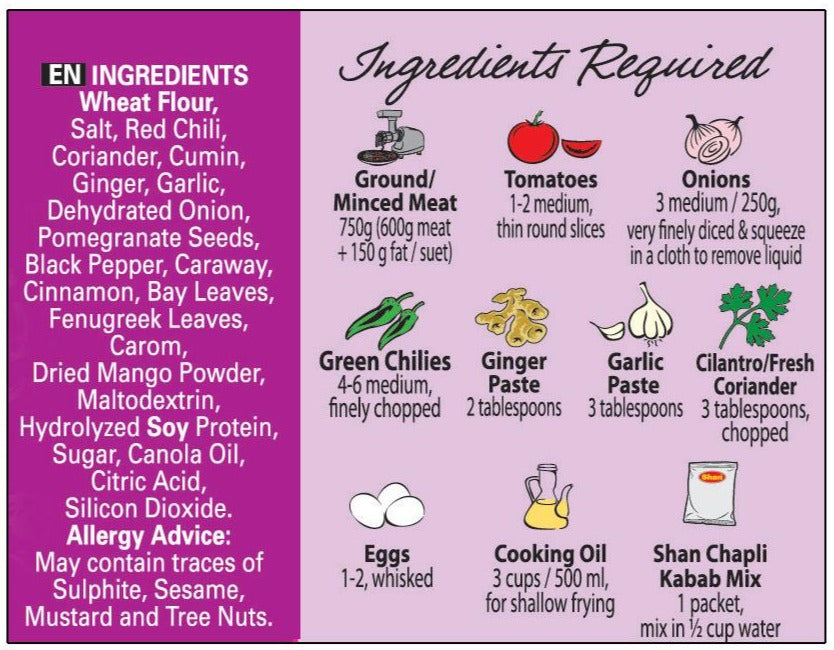 Shan Chapli Kabab Mix enables you to experience the authentic traditional taste of delicious Pashtun-style Chapli kababs.