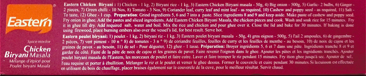 An aromatic mix of spices used specially in making chicken biryani, ground and specially packed to retain the aroma. This is tasty flavour of spice mix for exotic biryani.