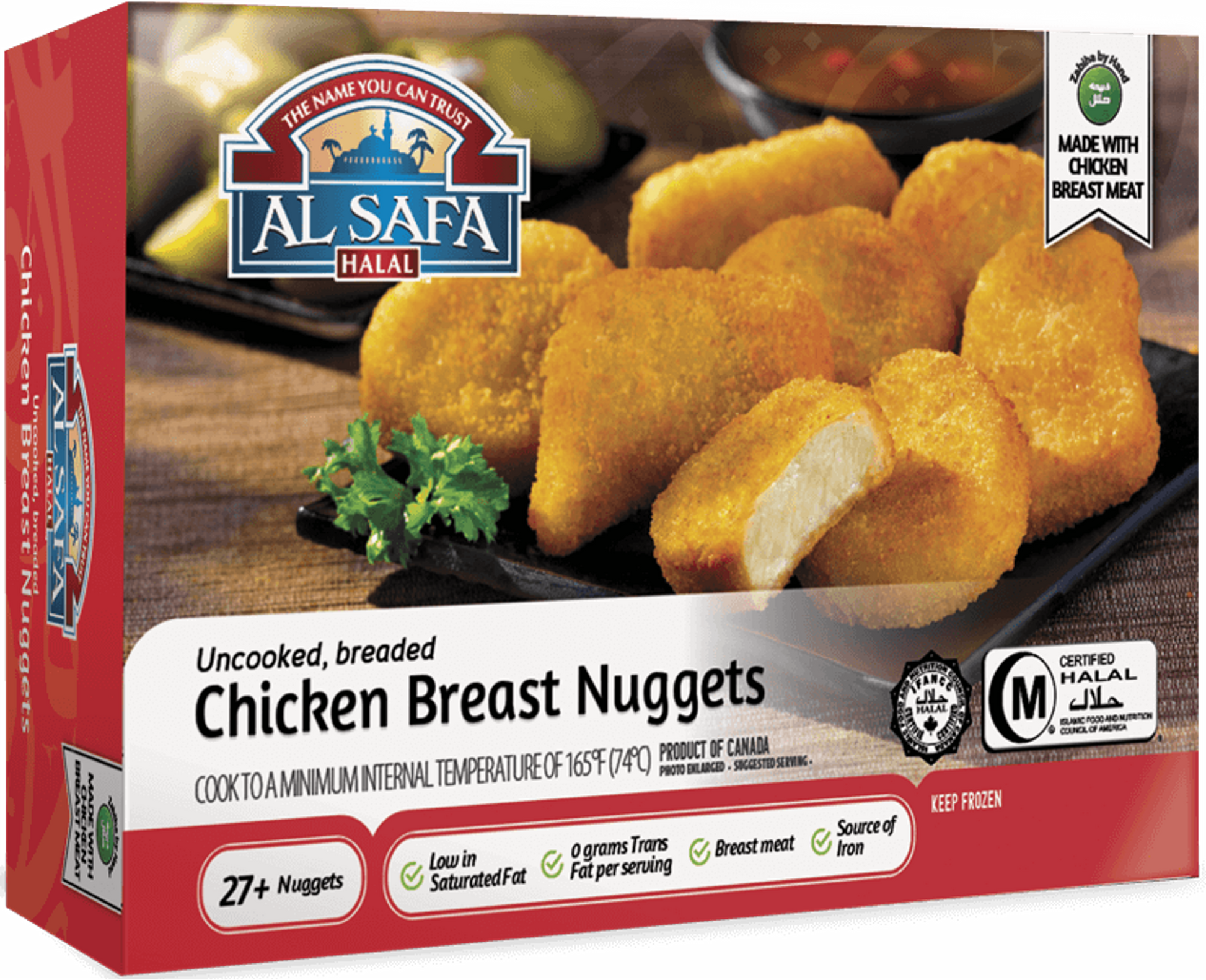 Our Halal Chicken Breast Nuggets at Al Safa Foods is a family favourite!! It’s made with chicken breast meat, low in saturated fat, trans fat free, has 0g trans fat per serving and a source of iron. Available in bulk packs!