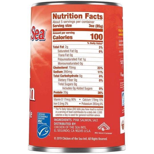 Made with pink salmon known for its mild taste, Chicken of the Sea Traditional Style Pink Salmon is caught from the cold, clear waters of Alaska. Chicken of the Sea salmon is premium quality, sustainable salmon certified by the Marine Stewardship Council (MSC). Packed in a traditional style, with skin and bones included and a touch of salt, a traditional pack offers a much richer and more flavorful experience. A versatile and delicious protein high in Omega-3* for salads, pasta, dips, sandwiches, wraps, and so much more. For fresh recipes, visit the Chicken of the Sea website.