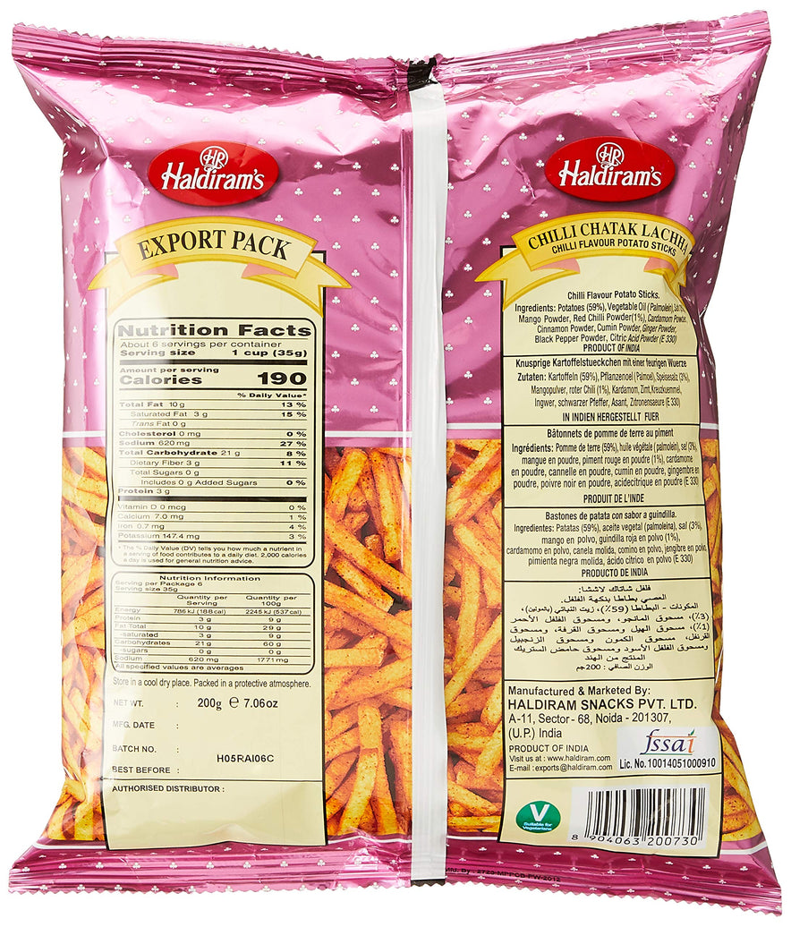 These delicious potato fries are made with savory spices that gives it a spicy flavor. Haldiram Chilli Chatak Lachha makes the perfect any time snack!