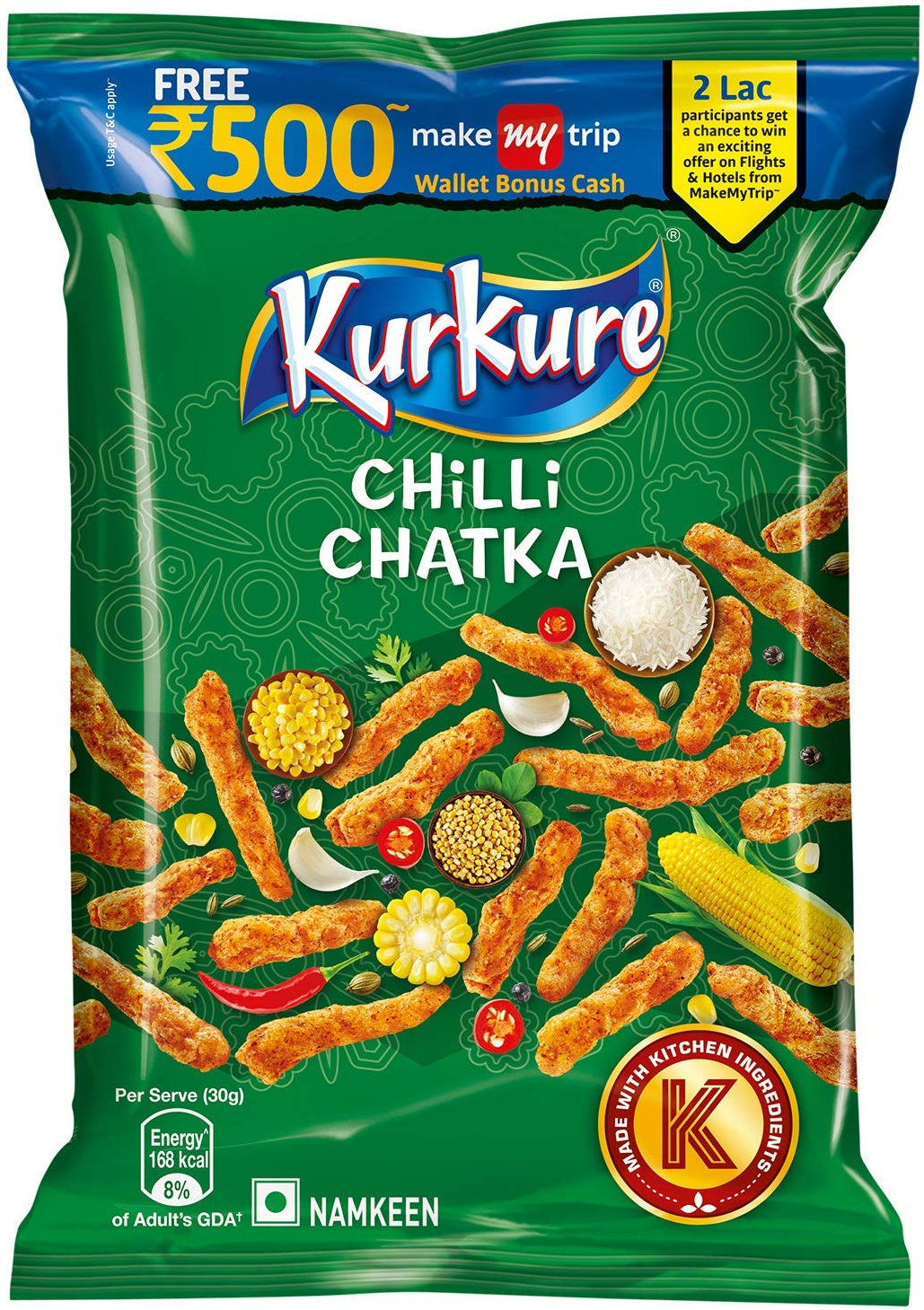 Kurkure is the famous munching snack of India. This variety is extra spicy with red chili powder and other spices. It's crunchy texture and robust flavour is great with tea time and with cold soft drinks.