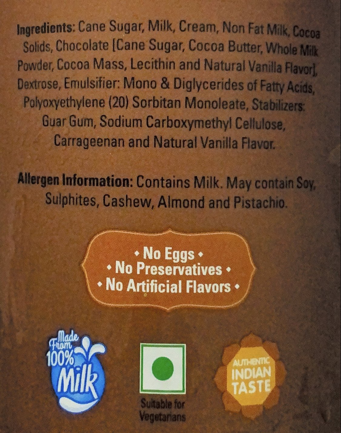Take a sinful dip in luscious Chocolate Ice Cream made with Fresh Milk Cream and rich Cocoa.