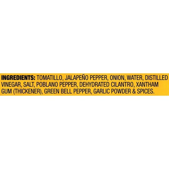 Cholula® Salsa Verde is crafted with fresh tomatillos, onions, jalapeños and poblano peppers for better-tasting authentic Mexican flavor. This green salsa has mild heat and tangy flavor that’s perfect for all types of Mexican foods, from tacos and tostadas to burritos, enchiladas and nachos.Like our Hot Sauces, Salsa Verde is made from family recipes that’s passed down through generations. We use fresh ingredients including tomatillos, onions, green bell peppers and chili peppers to create a salsa that brings a zesty burst of brightness with a subtle kick of heat. Serve simply as a dip with tortilla chips or over chicken, seafood, ground beef dishes, veggies, scrambled eggs, and frittatas. It makes every dish delicioso! This Cholula® Salsa Verde - Mild Salsa is in a jar that is 12 ounces. Store this shelf-stable item at an ambient temperature.