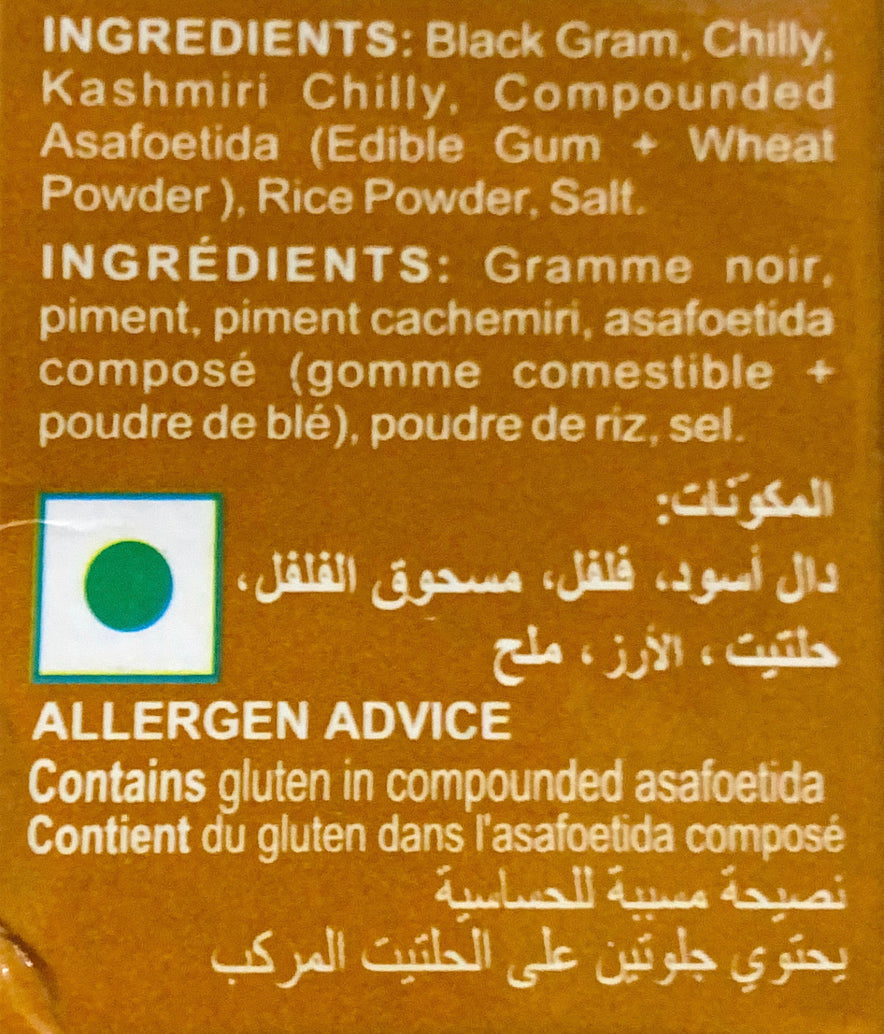This Brahmins chutney powder contains black gram, chilly, asafetida, rice, salt and comes in powdered form. It has specialty dairy free and the package weight is 100 grams. Storage instructions: store in a cool and dry place.